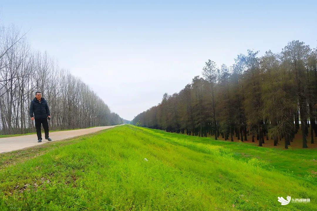 河水清澈,小草含青,一阵微风从水杉林中穿过,皆是春天的味道,汉北河沿岸风光如画。郭振沿河岸而行,细心巡查。