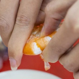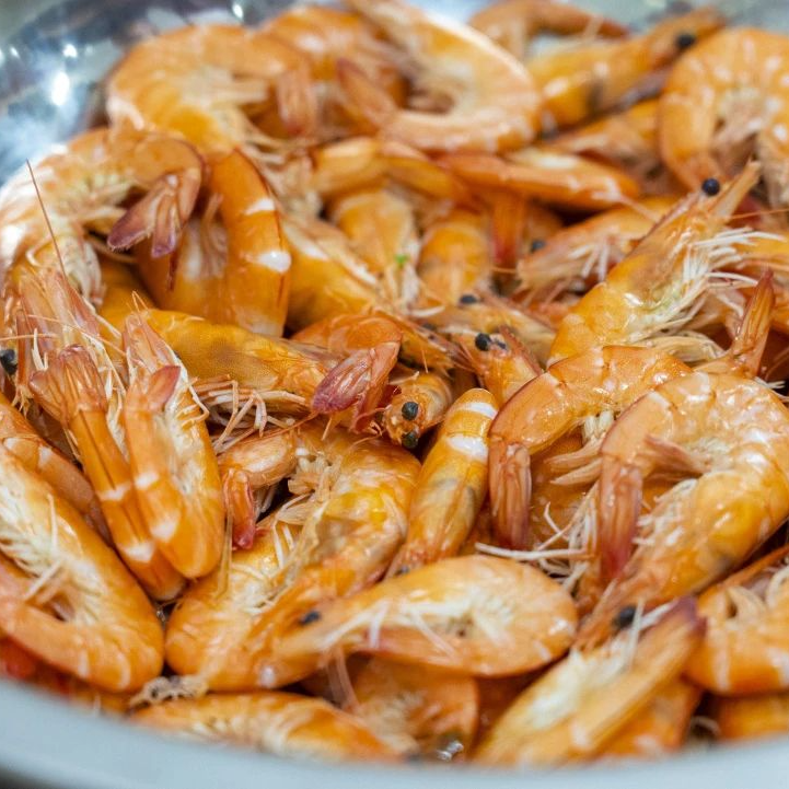 只见筐内对虾虾身粗壮,虾线鲜明,长度有近15厘米,约有一个成年人手掌大小,对虾不时从筐内蹦起,十分活泼。