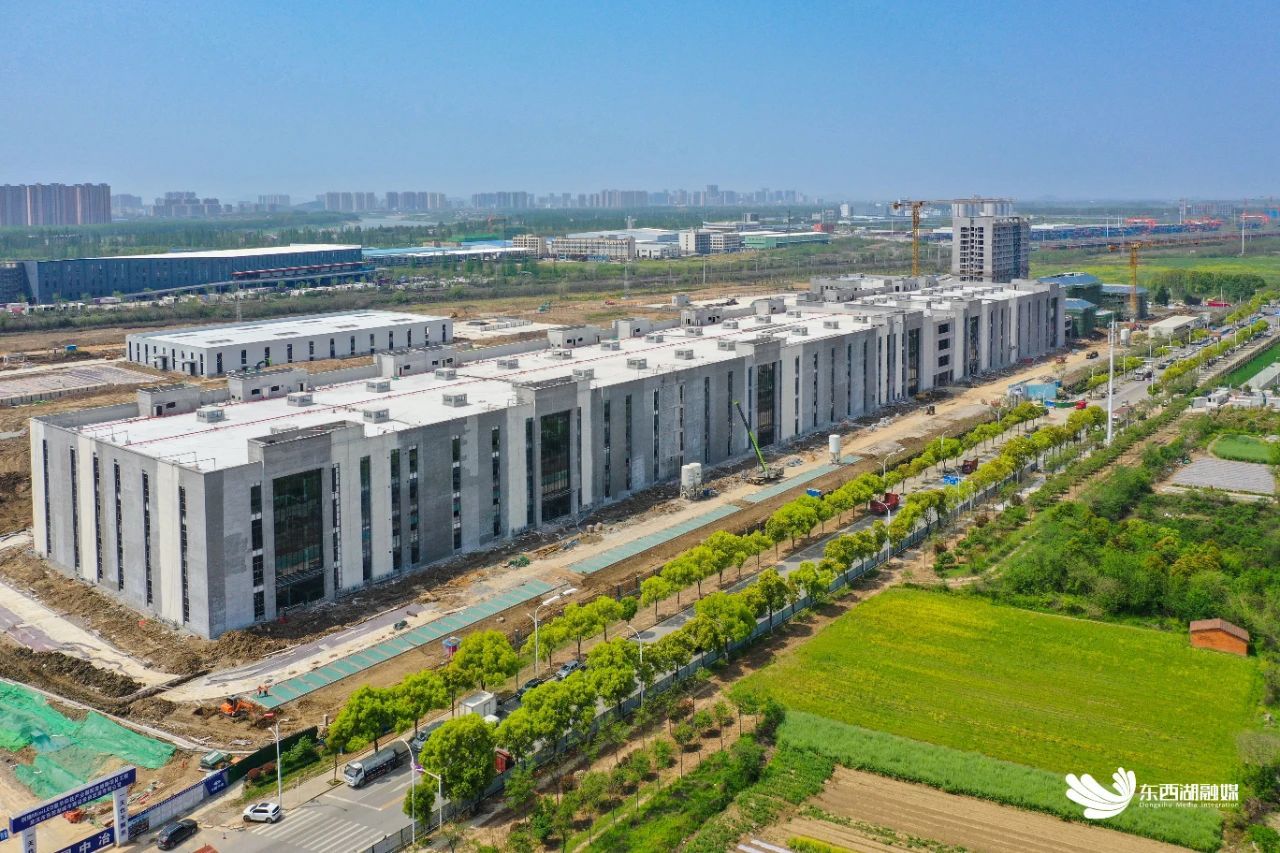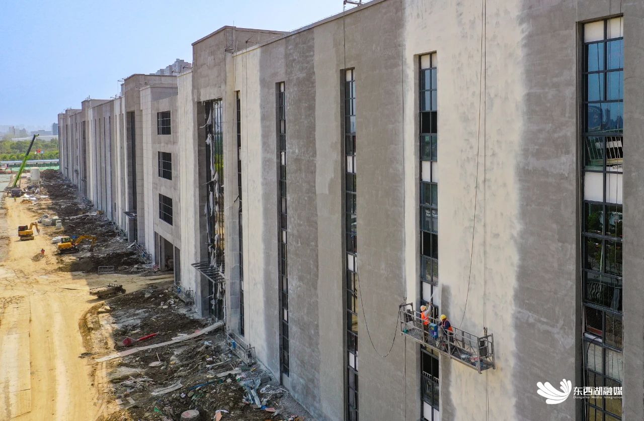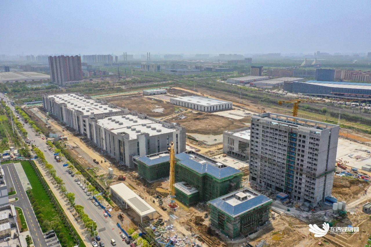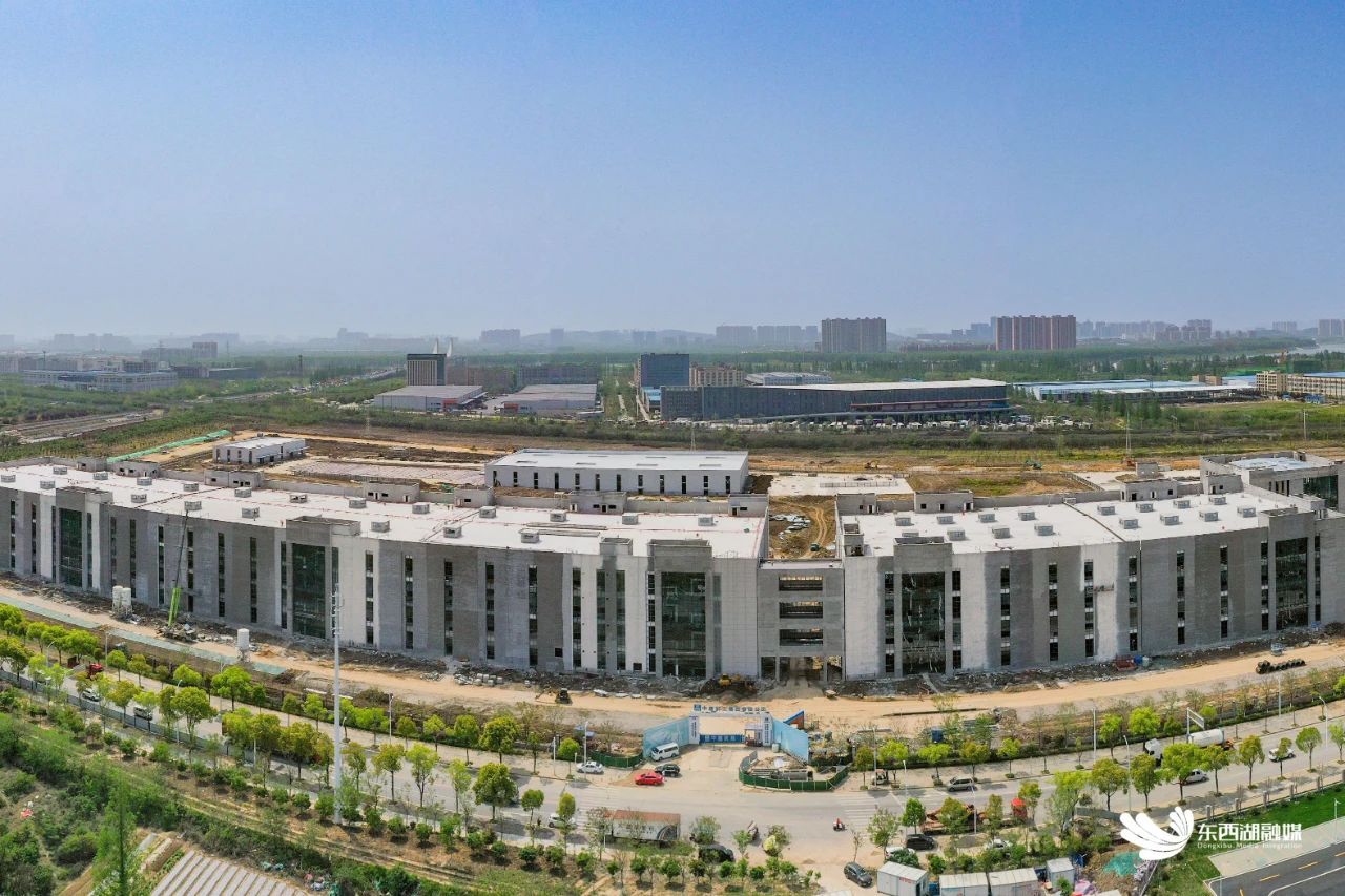 2023年4月10日,记者航拍东西湖区创维武汉Mini Led显示科技产业园项目施工现场,目前项目已整体完工,进入室内装修阶段,冲刺6月建成交付。