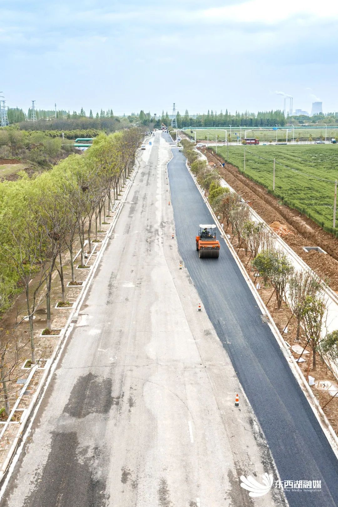80多名工人和多台施工机械抢抓一切可作业时间,正稳定有序地推进人行道砖铺设、强弱电走线等附属工程,以及路灯安装和绿化树木栽种等亮化工程。目前,道路主体已施工完成,工程进度已达85%。