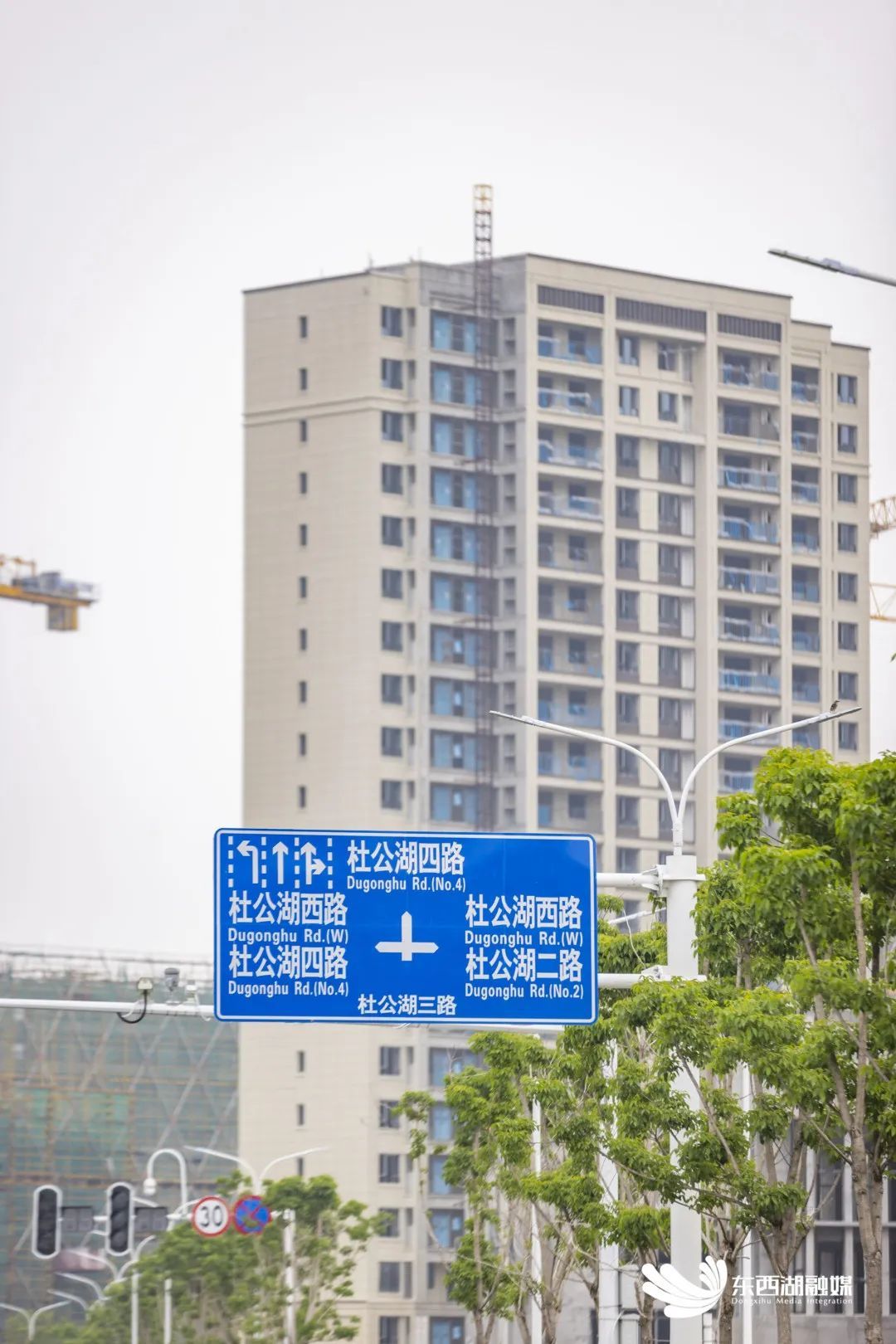 记者在现场看到,该路为弧形道路,中间段直接连通杜公湖国家湿地公园西入口,目前道路沥青路面、绿化、路灯、标识标牌已全部完工,为市民游客打造了一条新的亲水廊道。
