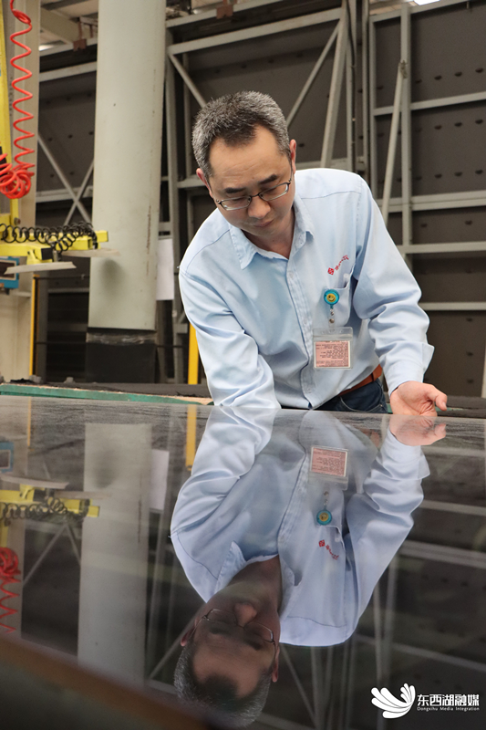 武汉一摩天大楼项目由10万方玻璃幕墙组成,建设周期长达8年,“连续6年供货,需要保证每个批次颜色一致。” 要确保每块玻璃颜色一致,需要实行有效的颜色质量控制过程。汤祥武介绍,第一批产品事前留样储存,后面的批次都是根据样品标准生产,比对合格后批量生产,保证每块玻璃的颜色都是一样的。