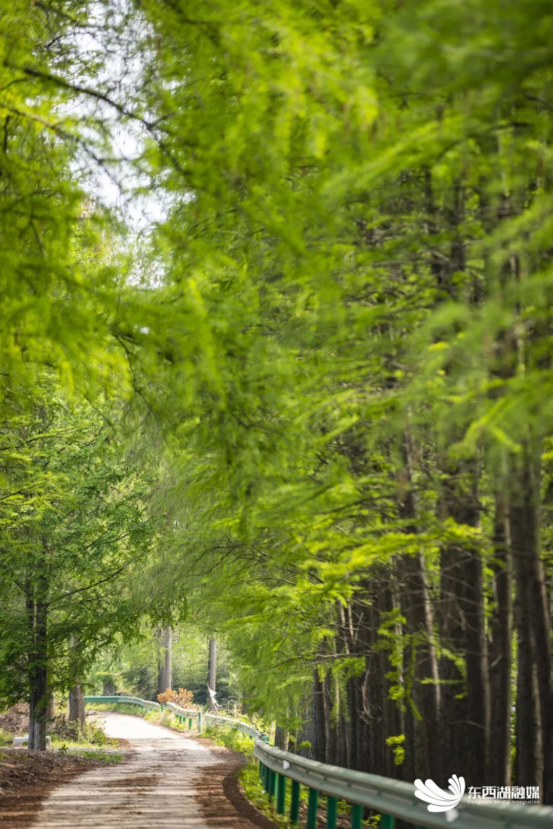 此前,东西横向贯穿大队的三条沟渠,也已经全部得到改善治理,两旁的道路全都水泥硬化并安装了护栏。而沿着西边通航沟往南边沈家港行走的道路上,一路全是水杉绿荫,置身其中犹如秘境探幽。