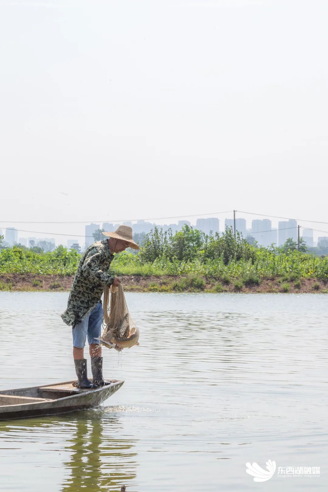 每隔800米,横着一条10米宽千米长的沟渠,连通全域,活水引流汉江。社区副书记张凯告诉记者,兴修水利是良湖垸近年来投入最大的为民利好,水产养殖变得更加得心应手。“大队有145户人家,每户都从事渔业,鱼塘养殖面积达4579亩,整个大队面积也只有5676亩。”