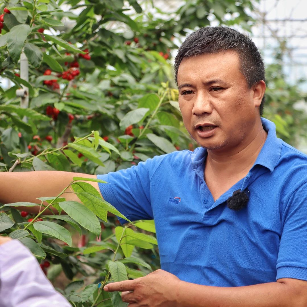 2020年,在小范围试种成功后,李华栋引进了2500棵车厘子果树,通过土壤改良、大棚控温等多种办法,有2400多棵存活下来。经过两年不断调试,终于在去年5月迎来第一次大面积挂果,虽然产量不高,但甜度已达26度,开园仅一周,果子便被抢购一空。