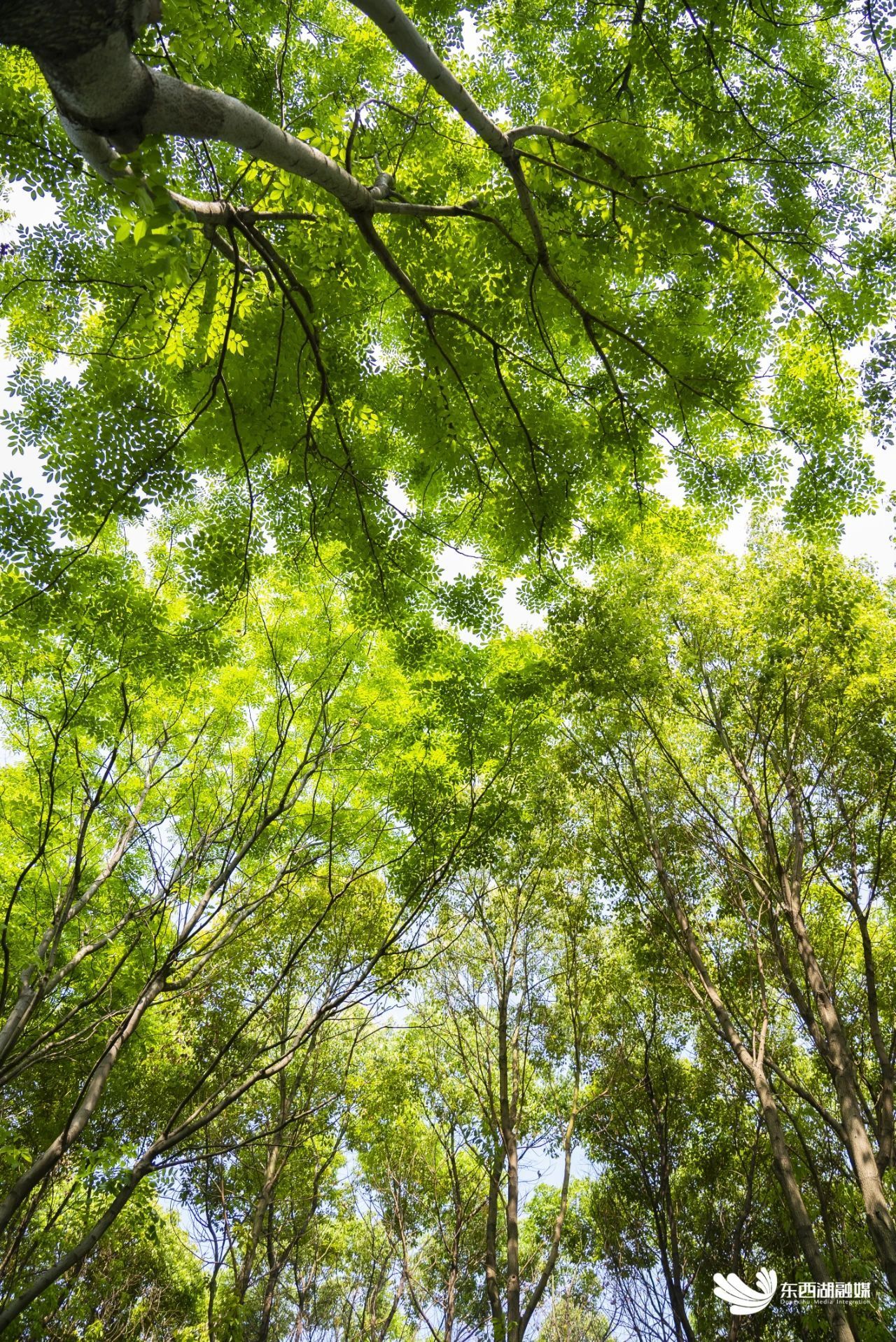 清晨,在公园里深吸一口气,“没错!是夏天的味道了!”青青的,清清的,仰头张望,满目葱茏,枝繁叶茂的大树枝条交错,编织了一张郁郁葱葱的“天幕”。