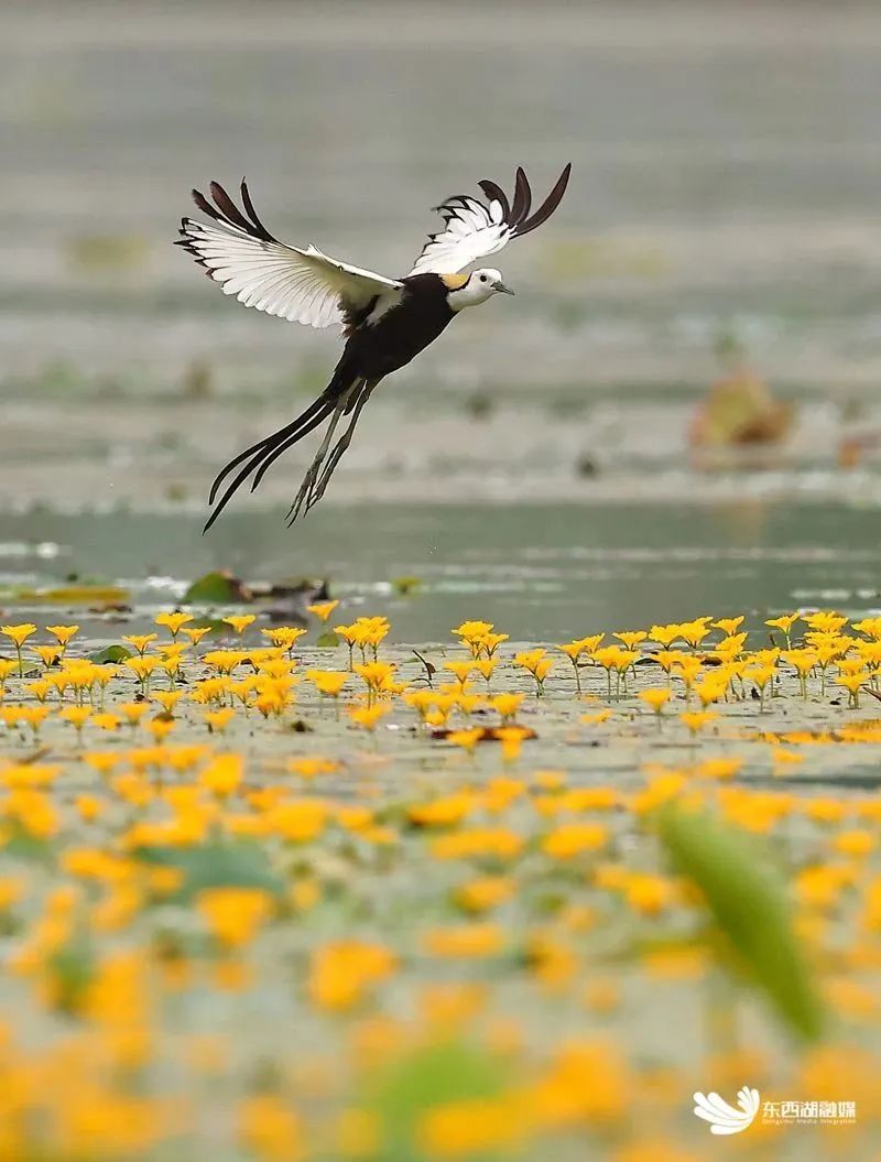 “第一次见到水凤凰群落,还是在5月初的府河北岸。”夏候鸟水雉是国家二级重点保护鸟类,原生在热带及亚热带开放性湿地中,夏季北上寻觅栖息地繁殖。在东西湖境内发现水雉群落,周东泉格外兴奋。