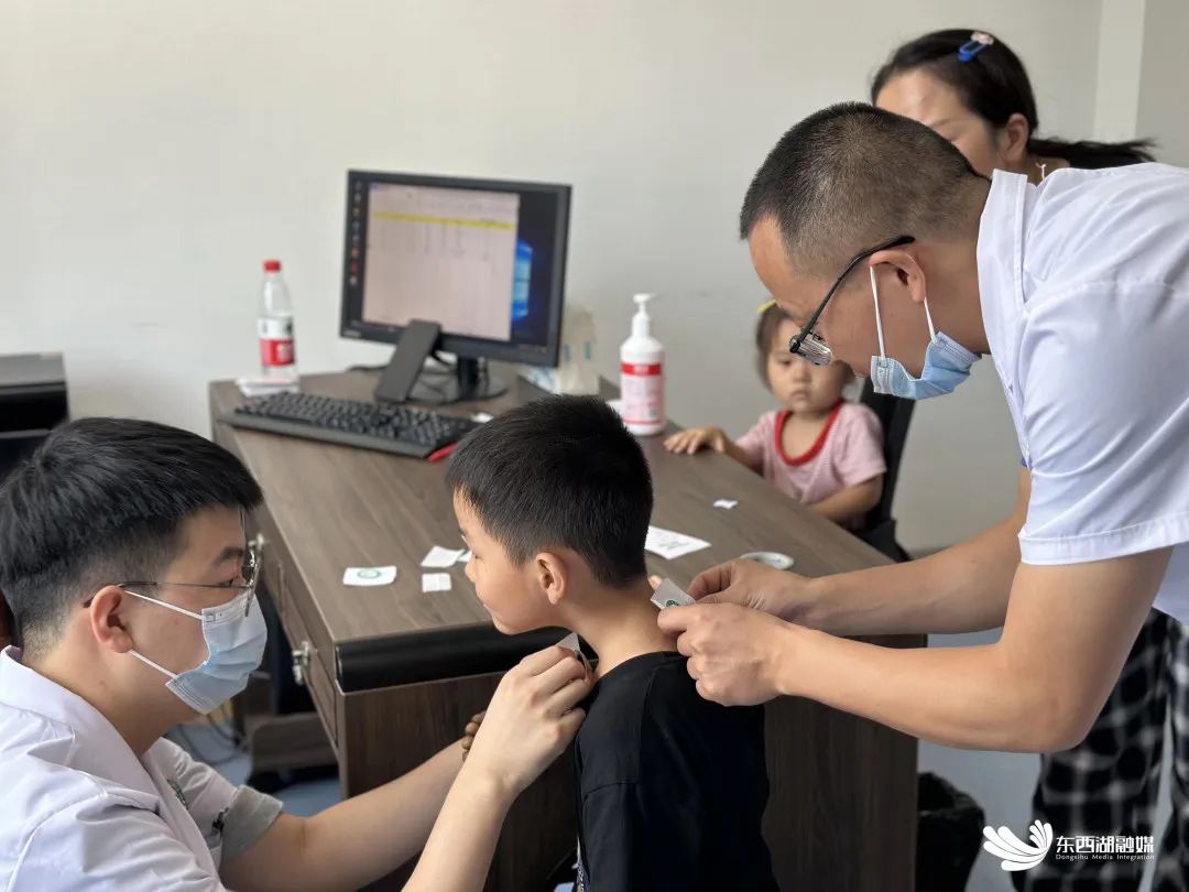 宋女士带着两个孩子前来敷贴。大儿子今年12岁,每逢冬季流感时期,鼻炎极易发作。“我已经连续带他贴了2个疗程了,一共6年,很见效,这次我还带了我家老二来贴。”宋女士介绍,小儿子今年7岁了,身材瘦弱。中医医师看诊后,为他开了脾胃贴来调理身体。