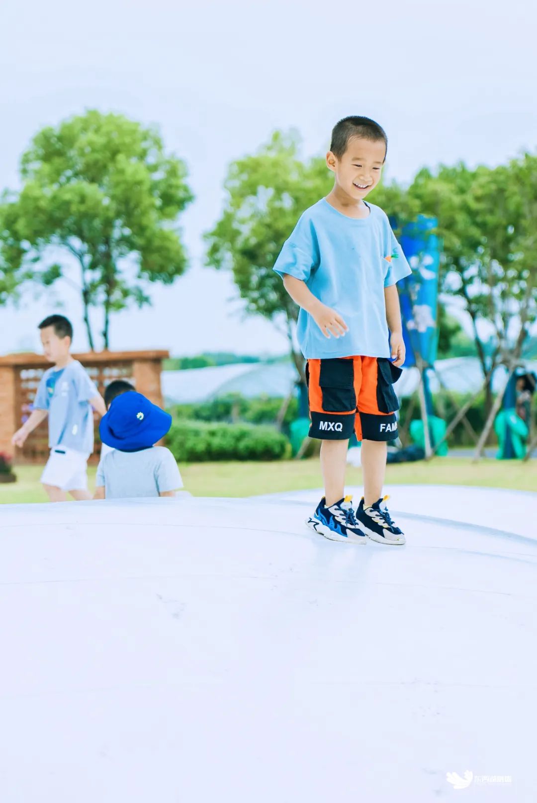 网红秋千、蹦蹦床、独木桥、攀爬架和充满童趣设计的“军事五项”,一套鲜艳的儿童游乐设施,成了小朋友们的最爱。热烈的阳光下,孩子们玩得大汗淋漓。