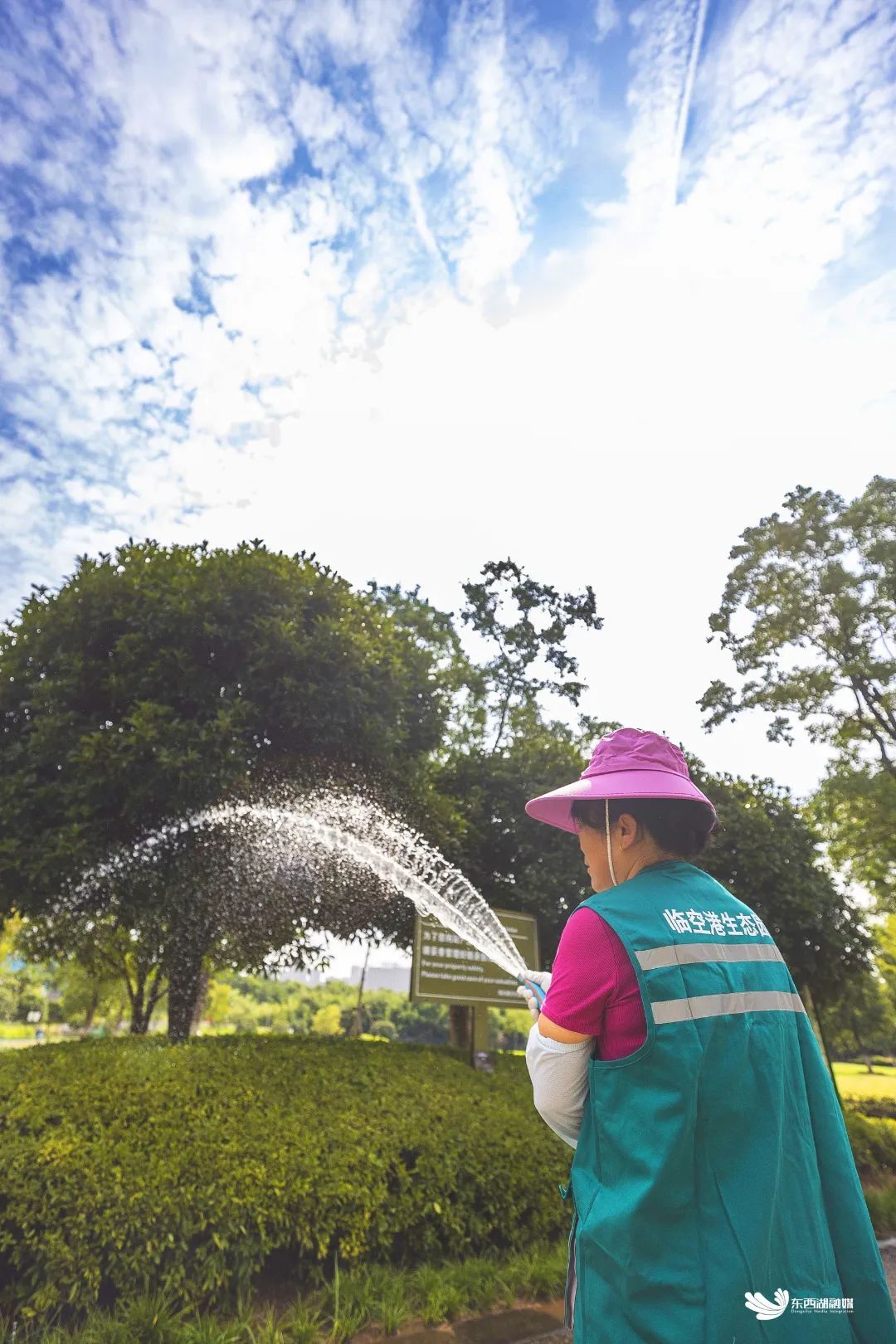 曾钢情告诉记者,公园里大部分以乔木、灌木为主,因为它们的耐旱能力较差,对水分需求较大,所以要勤浇水,通过少量多次浇透土壤。来回作业,每天上午还不到3个小时,曾钢情的微信步数,就有2万步。
