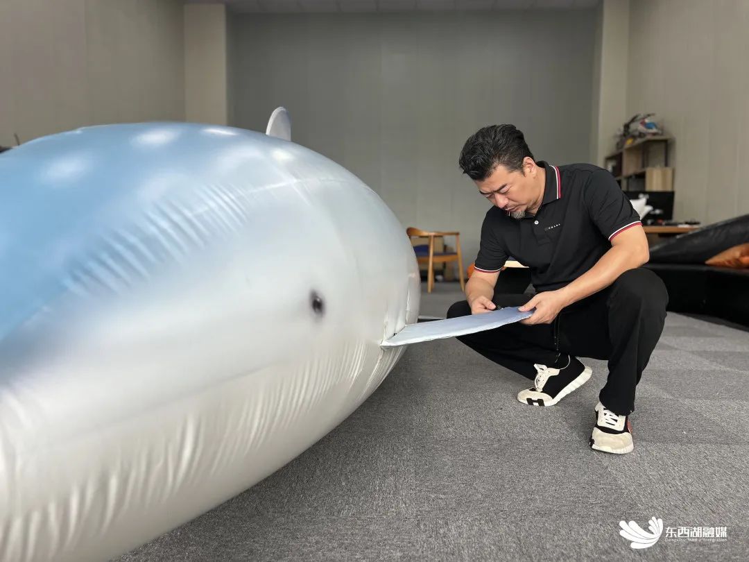 记者走进张珩的办公室,地上是“客户宠儿”,一只六米五长的大海豚,桌上则摆着一个形似天鹅的简易模型。“这是我们今年主攻的研发方向,湖面集群系列,预计投入20个新技术。”张珩调研市场发现,很多景区,比如木兰草原、东湖绿道,都有很多空旷的湖面未被发掘应用,天鹅集群产品能填补湖面空白,提升景区趣味性、互动性。