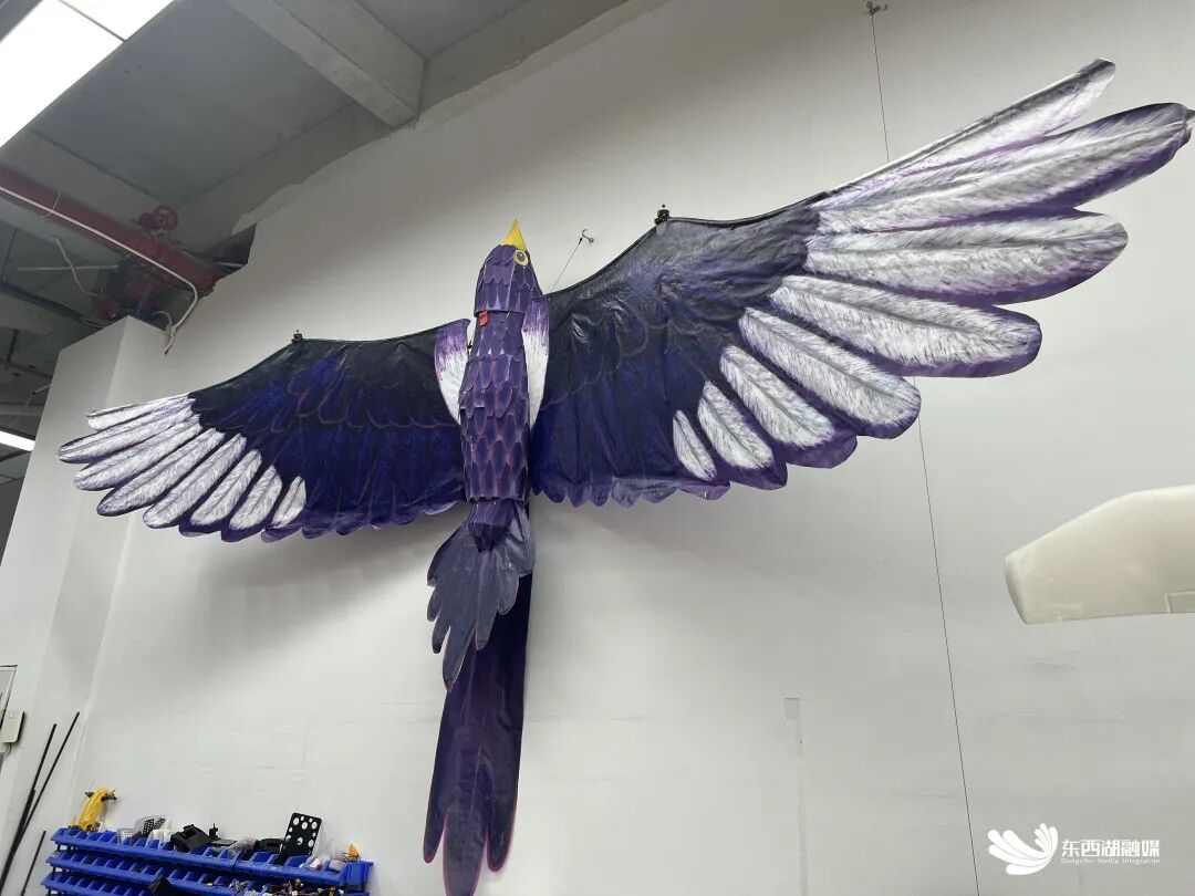 走进大秀智控的研发设计制造基地,墙上、地上放满了各种鸟类、海洋生物的模型。创始人张珩介绍,在这些模型内部充入氦气,再安装上动力系统,输入飞行程序,它们便能在空中模拟生物原生姿态进行飞翔,这就是软体无人机表演。