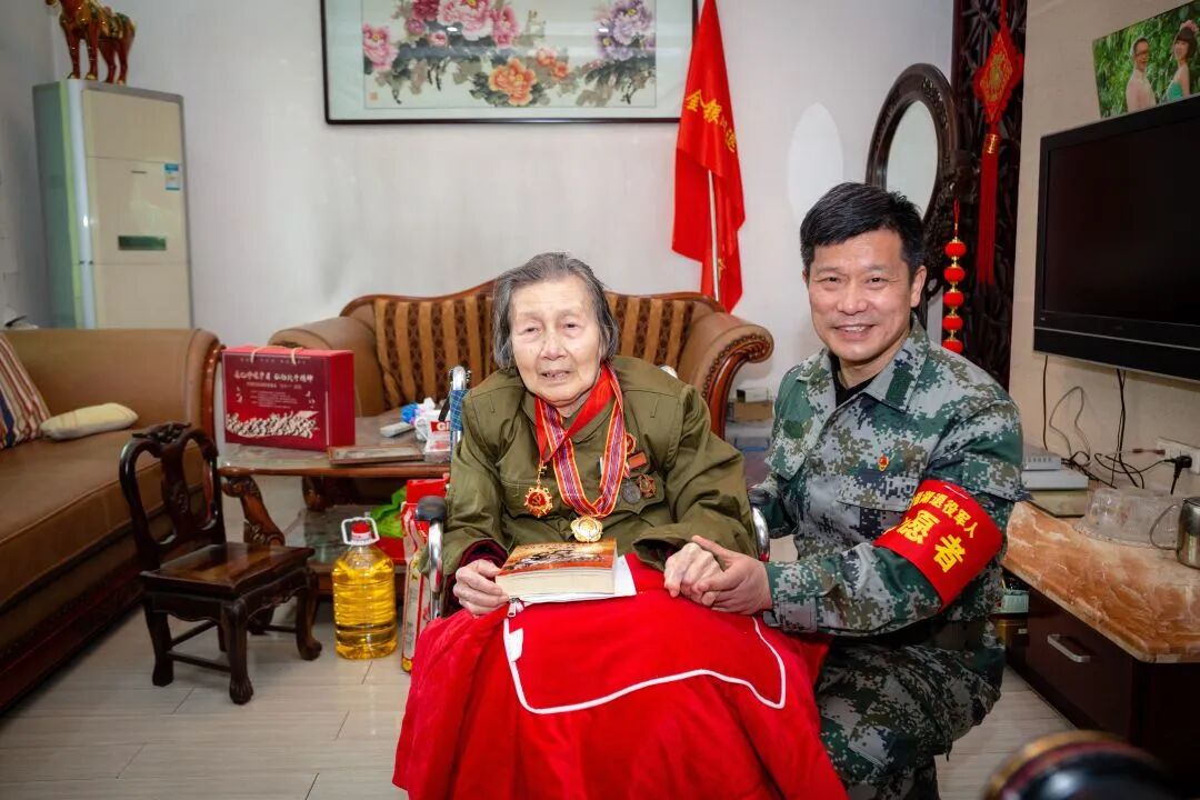 李定胜带领志愿服务队队员看望退伍老兵。(本人供图)