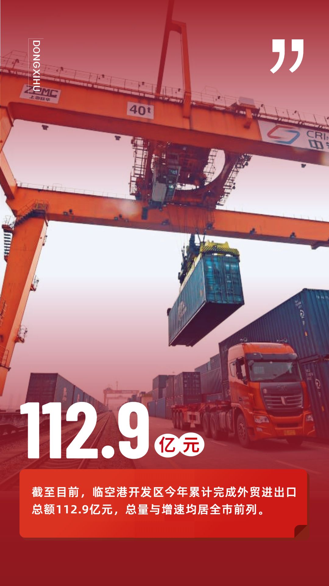 外贸是开放型经济的“风向标”。截至目前,临空港开发区今年累计完成外贸进出口总额112.9亿元,总量与增速均居全市前列。