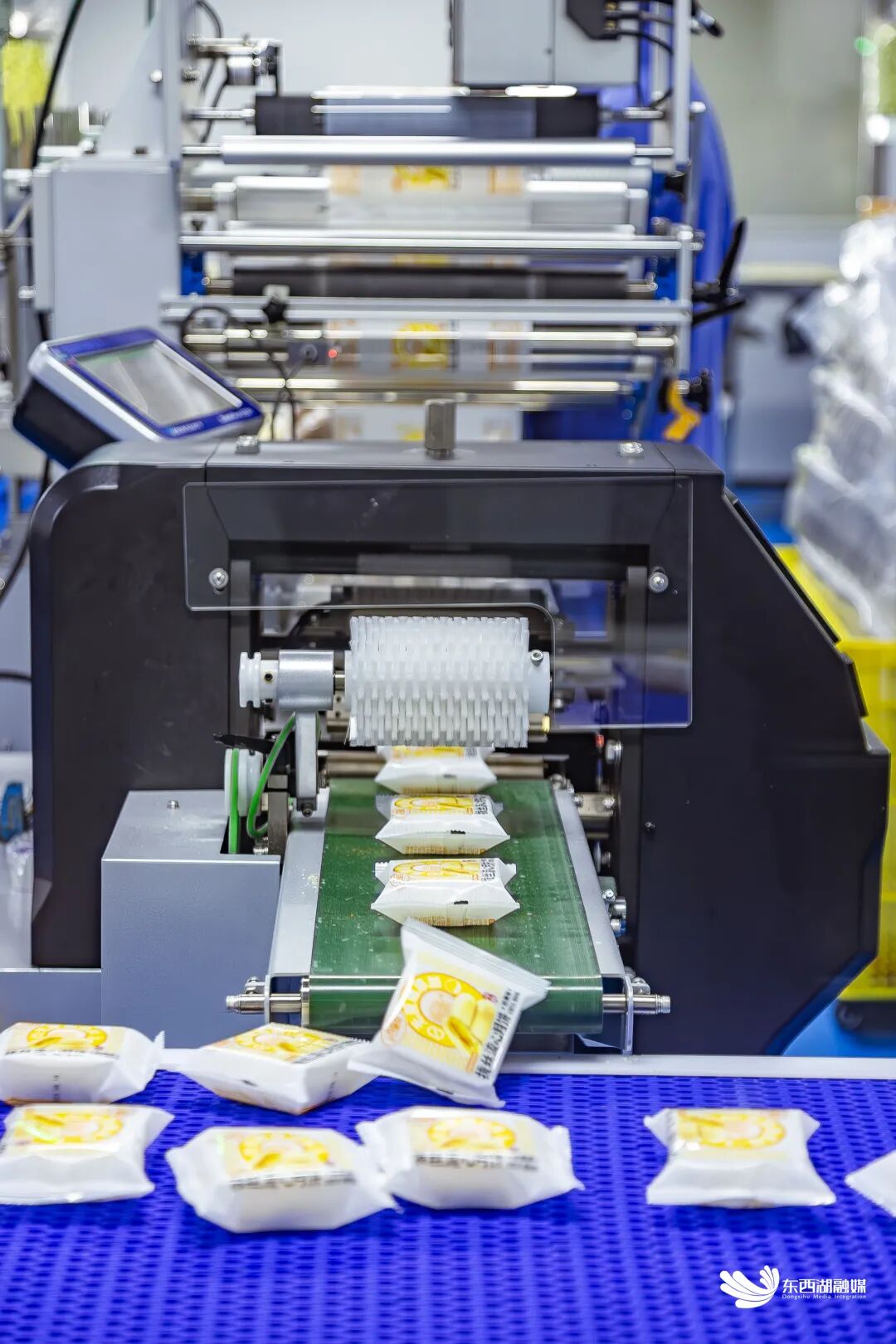 记者沿着生产车间参观通道看到,拌料、成型、烘烤、冷却、封口、包装等自动化生产各环节衔接流畅,一袋袋、一盒盒、一罐罐,月饼包装做得“小而精”,主要突出月饼口感风味。