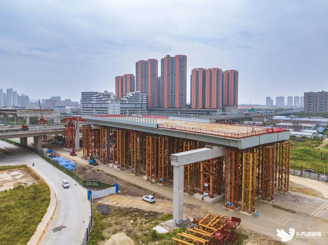 G107武汉市东西湖段是东西湖区西部路网中横贯东西的城市快速路,由中建三局集团有限公司承建的二标段起于新城十七路东,止于八方路西,全长3.423公里。