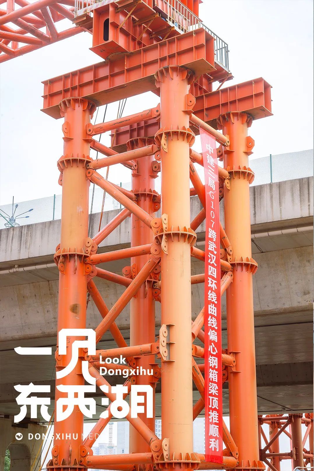 主线跨四环线钢箱梁是G107项目全线唯一一个采用顶推法施工的部位,标志着项目重难点控制性工程取得重大进展。