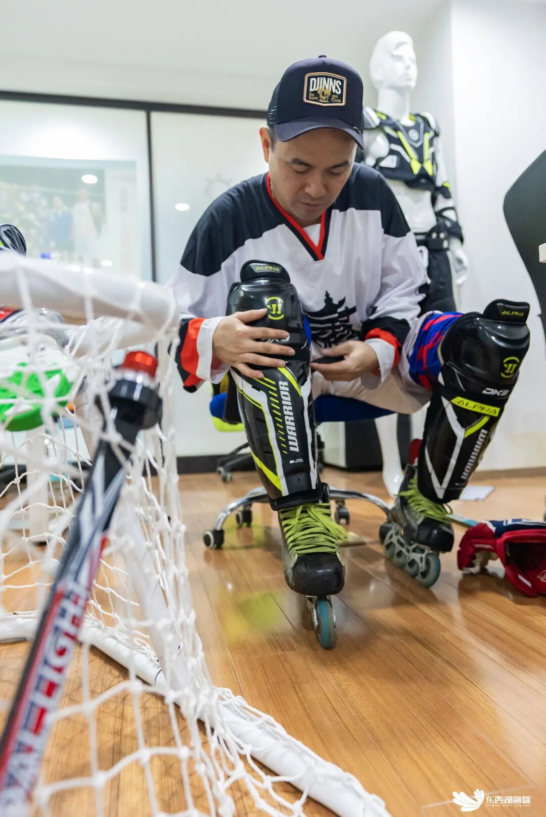 冰球是小众冰雪运动,需要专业冰场,成本高昂。黄纬纮结合武汉实情,用轮滑代替冰刀,转换为“轮滑冰球”,只要有块平地,就能驰骋挥杆。