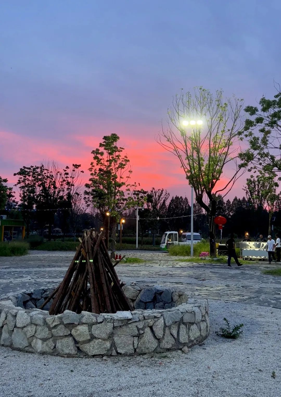 晚霞下的篝火晚会现场(半岛庄园供图)