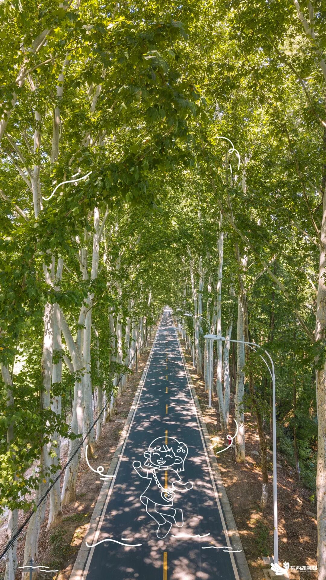阳光透过茂盛的梧桐树洒在路上,光影交错的氛围让人仿佛进入童话世界,在辛安渡街东垦路上,只剩下吹过发梢的微风。