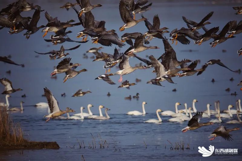 每年十月底,路过天鹅湖,可以看见从西伯利亚风尘仆仆赶来的候鸟。