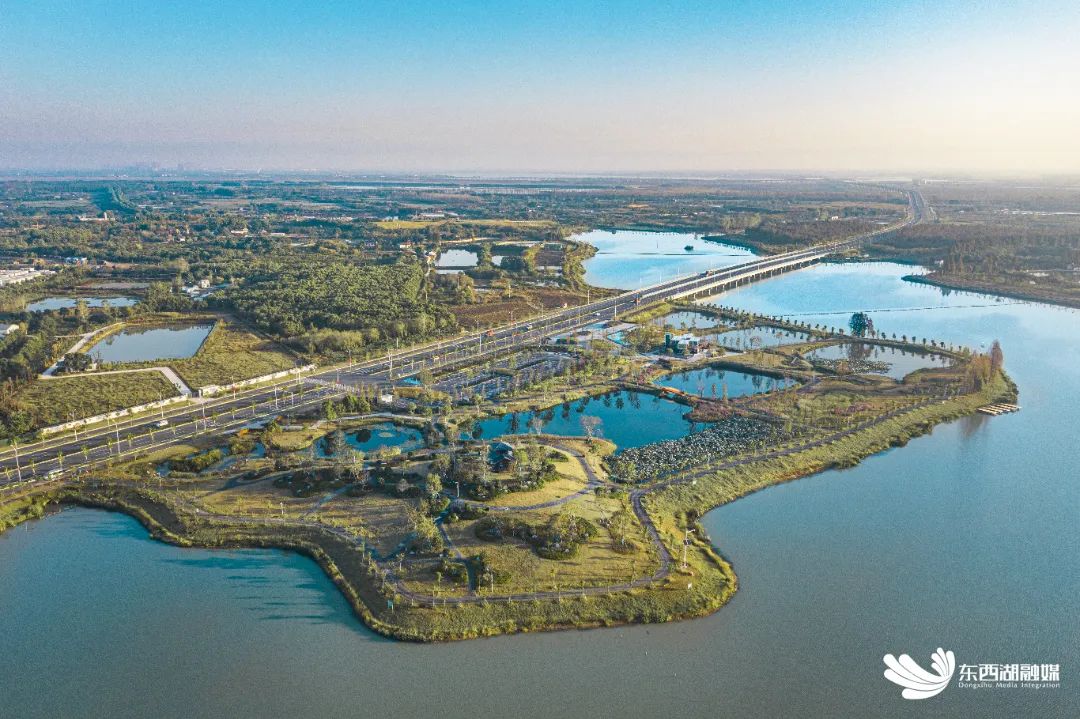 站在径河大桥上,以金银湖为绿色圆心,公园、绿道、湖水与广场、街道互相联结、融合。