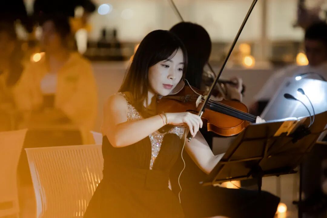 9月28日晚,一场治愈的“华语经典曲目专场烛光音乐会”在临空港文化中心上演。浅浅摇曳的烛光灯,跳动婉转的音符,年轻的音乐家们演奏键盘、中提琴、小提琴等乐器,带来了《蒲公英的约定》《知足》《勇气》等华语经典曲目,勾起现场观众青春回忆,享受着音乐带来小甜蜜、小欢喜、小怅然……