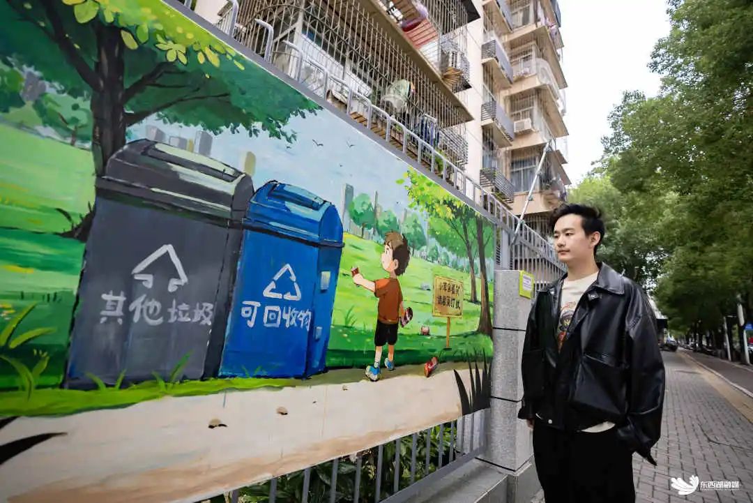 29岁的贺童桐是一名居住在常青花园的插画师,大学毕业后,一直在深圳从事艺术类相关工作,今年才从深圳回到武汉工作和生活。他所创作的《垃圾分类举手之劳》作品,被挂在了常青北路与康居二路交汇路路口的围栏上。