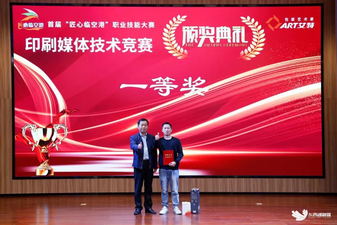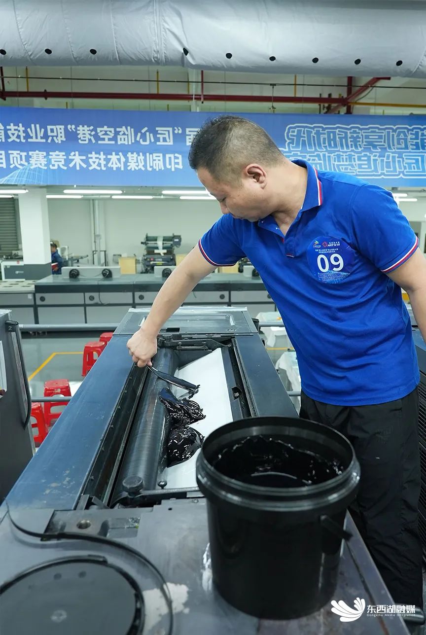 在上机操作中,每位选手拿到《匠心临空港》样品后,都要先分析它的颜色、材质、工艺,然后开始预打墨、选材、上版、走纸式印刷、上下套准、调色、正式印刷等多个环节。