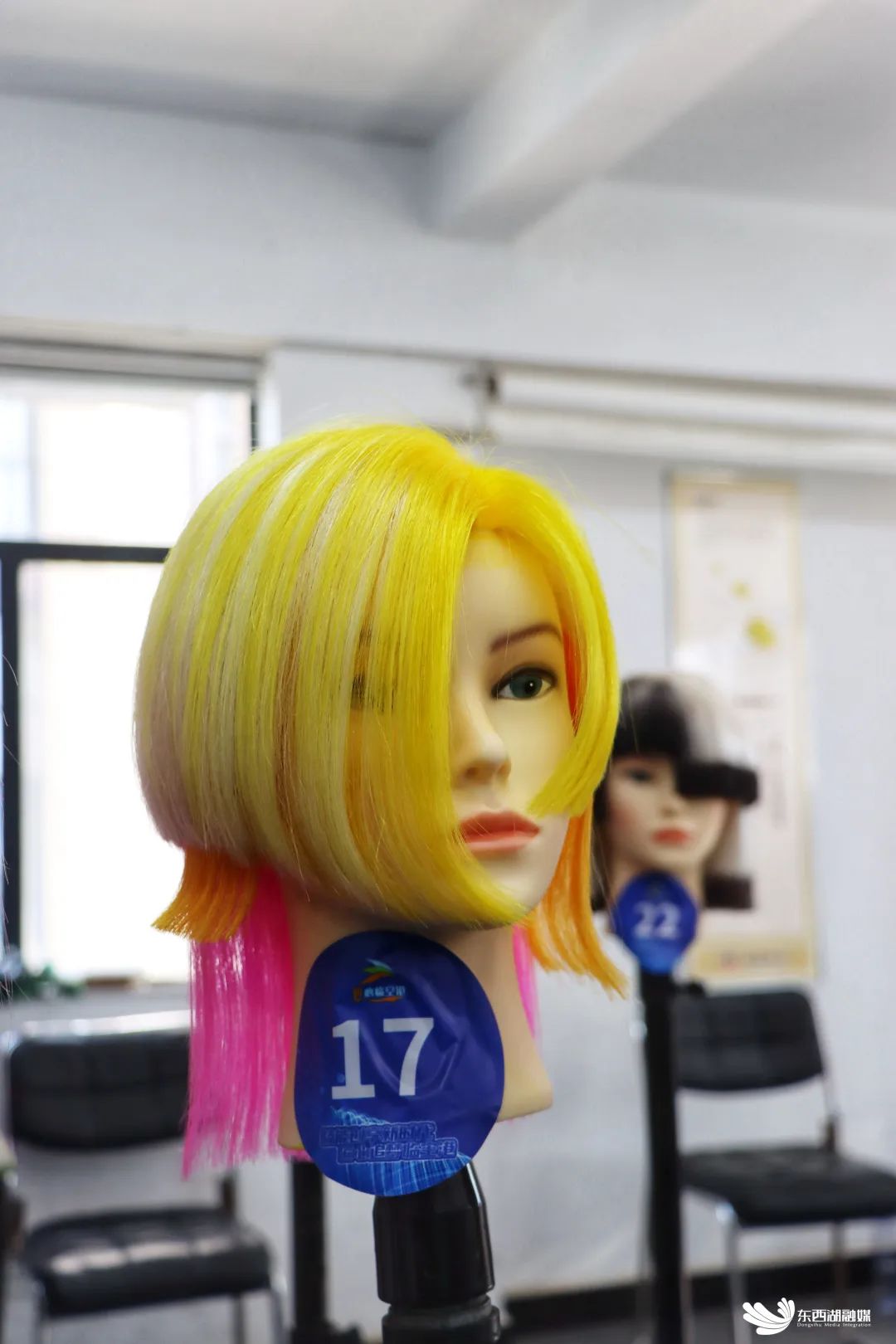 起初给别人当学徒,从业13年来,她刻苦努力、稳扎稳打,很快在专业中崭露头角。这次在家门口比赛,李贝感到了压力。为积极备战比赛,她利用工作之余加紧训练,提前拿“头模”练手,构思造型。