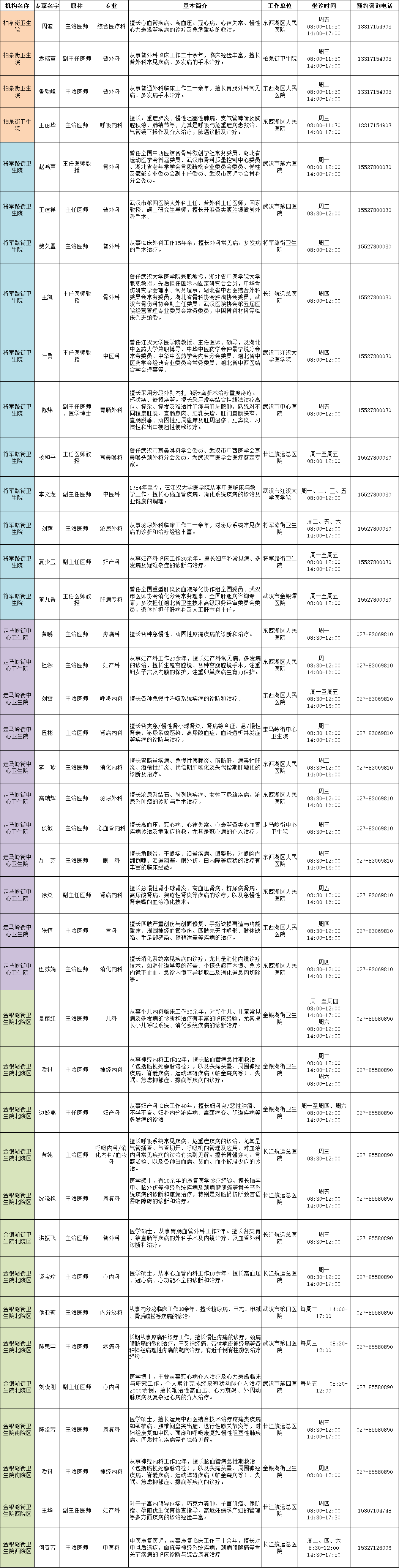为了更好地服务辖区居民提升医疗机构服务能力,东西湖区部分医疗机构通过外聘专家及医共体开展专家下沉坐诊活动,10月30日-11月5日,共115名专家走进社区,让居民在家门口就能享有三级医院的医疗服务。 (文:金齐天 通讯员:夏丽红)