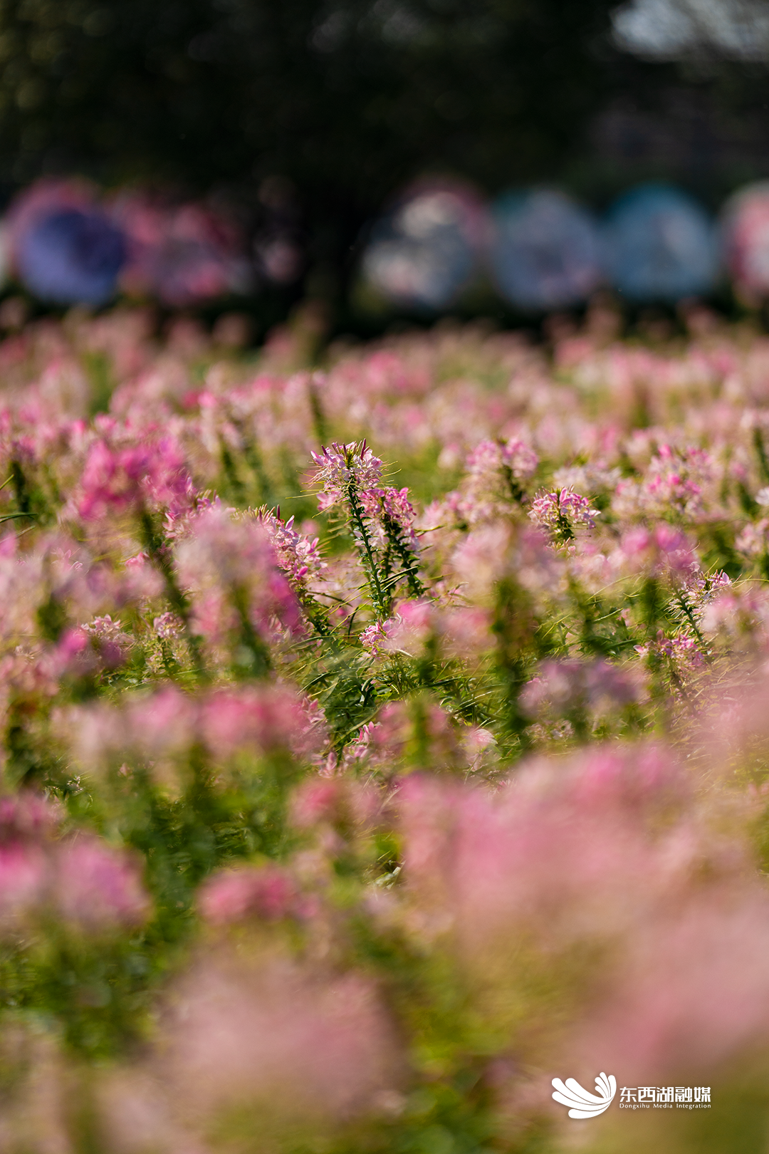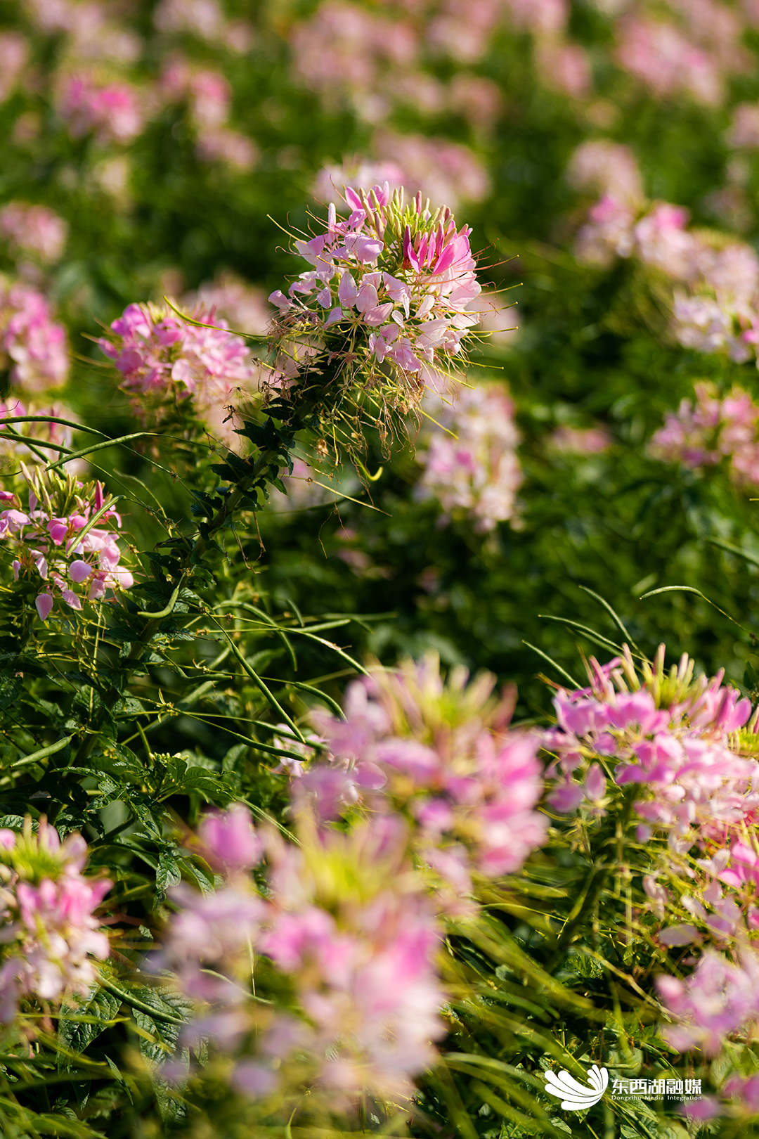 繁茂的醉蝶花也是粉色花海的当红主角。