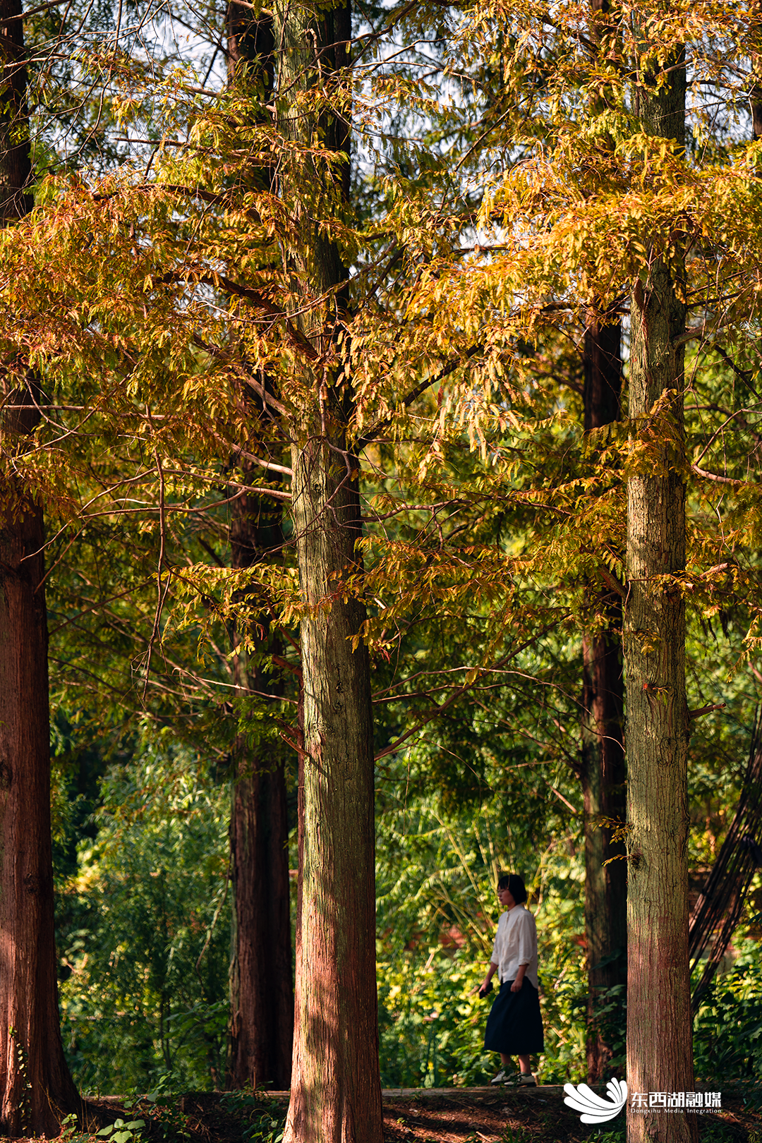 20多公里长的慈惠街与汉江干堤蜿蜒并行。道路两侧水杉高大挺拔,之前的苍郁葱翠在此刻披上了一层金纱。车行其中,仿佛穿行于一条没有尽头的油画长廊。