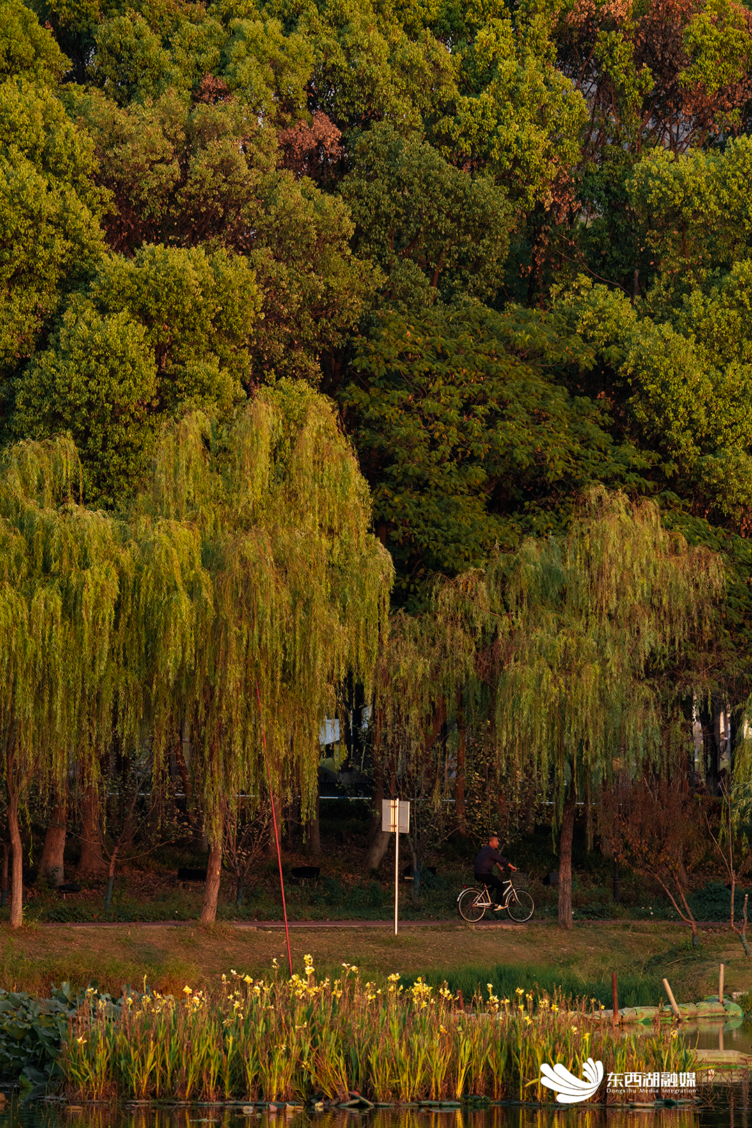 42公里绿道移步换景,柳条还来不及褪去绿色,就已披上暖色外衣,俯身欣赏倒影里的层林尽染。