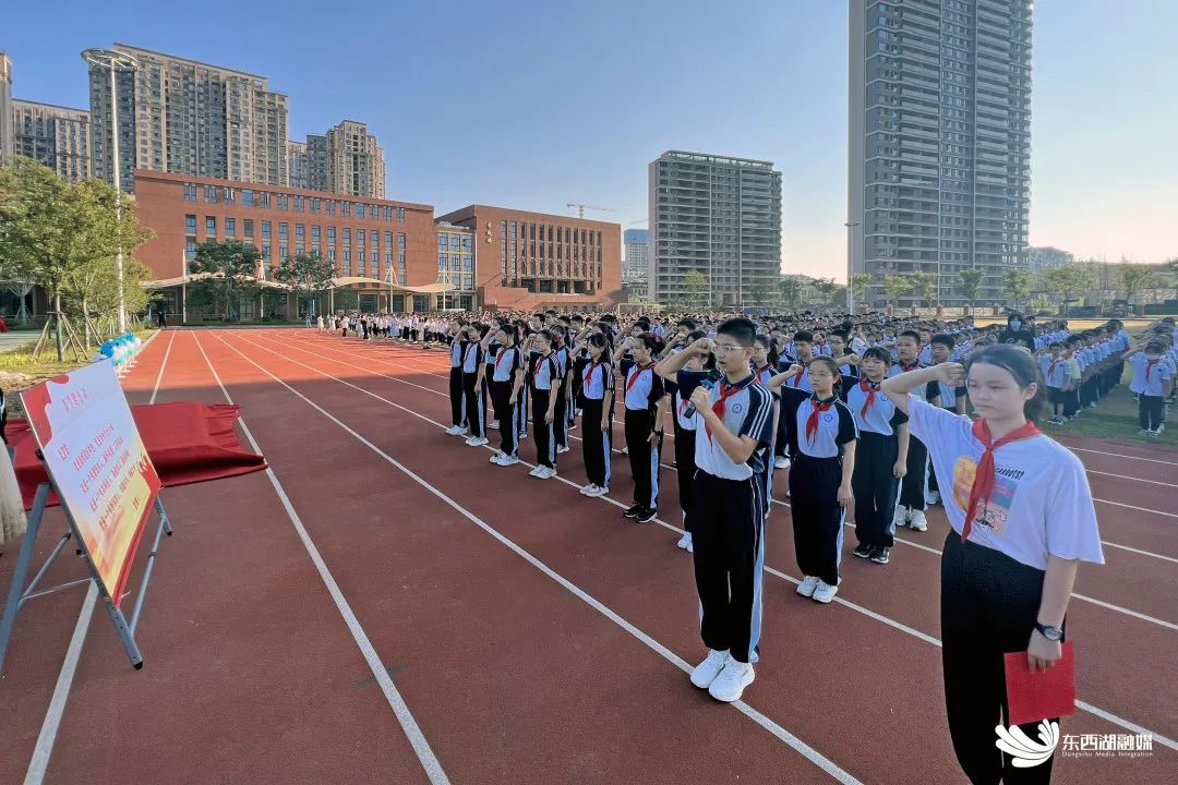 园博园学校新学期开学典礼上,莘莘学子阔步昂首、满怀憧憬。