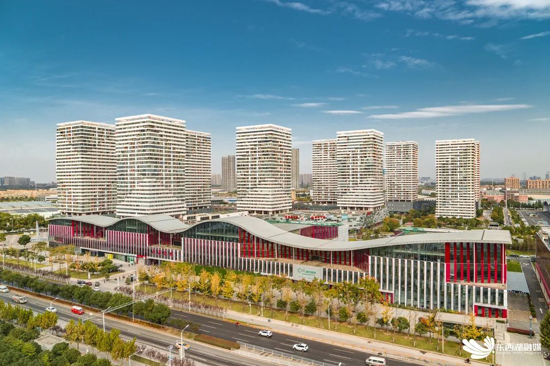 站在工厂门口,一眼就看到两栋高楼如同厚厚的书旋转叠摞而成,楼下是屋顶如长江起伏的大型会展中心,周边环绕着现代化写字楼和工厂,四处人流涌动、朝气蓬勃。