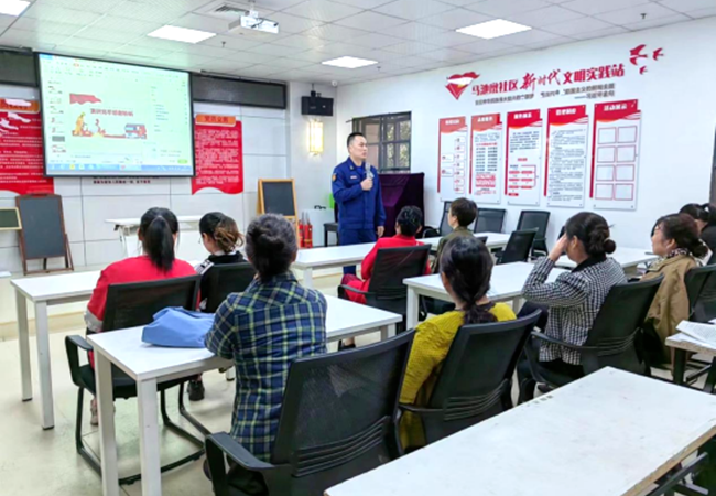 日前,将军路街道马池墩社区以新时代文明实践站为阵地开展“消防讲座进社区 安全知识入人心”活动。专职消防队员就如何安全用火用电用气、如何正确拨打119报警电话、如何正确使用消防器材、如何火场自救逃生等消防知识向居民进行了细致讲解,提升居民们的消防安全意识,筑牢社区消防安全“防火墙”。