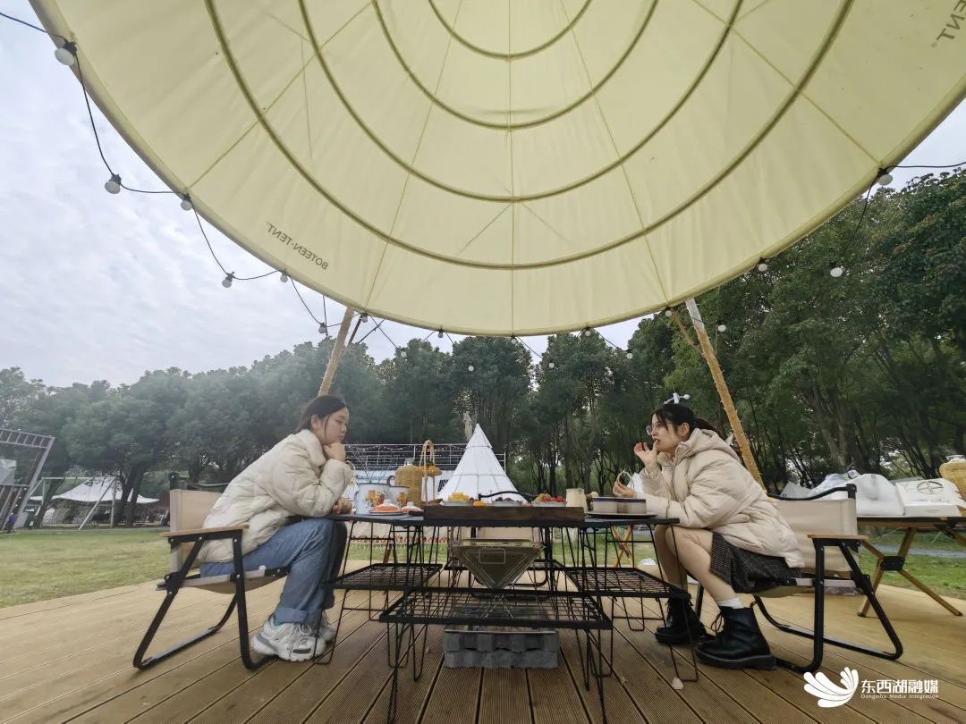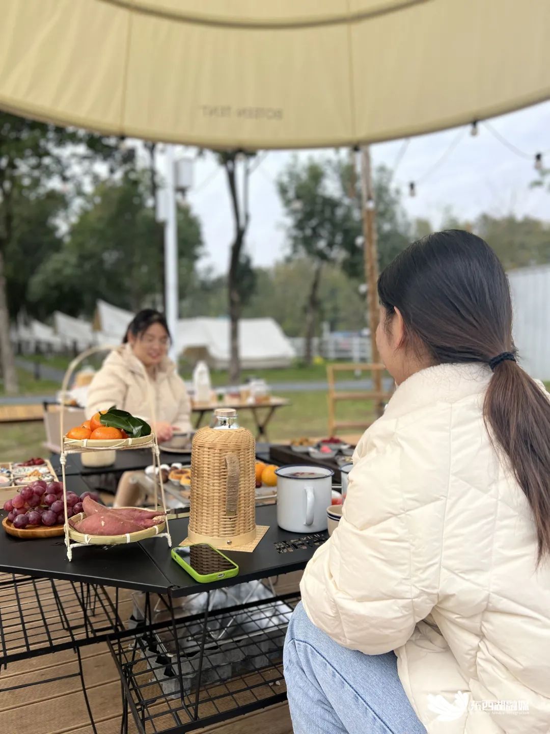 坐在户外椅上尽情放空。来上一口香甜温热的烤物,品上一口香气馥郁的茶,沁人心脾,暖意立即传遍全身,享受“围炉煮茶”带来的安然、松弛感。