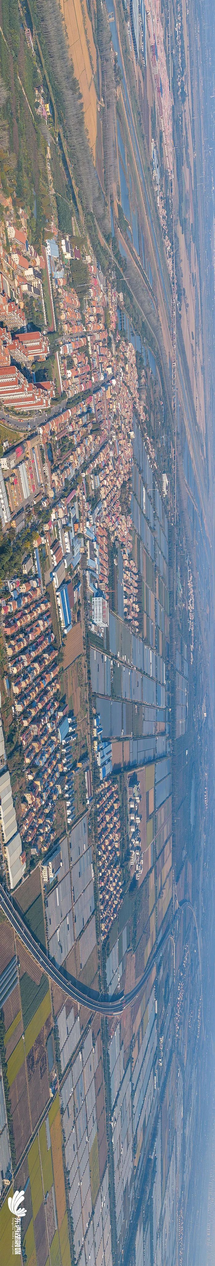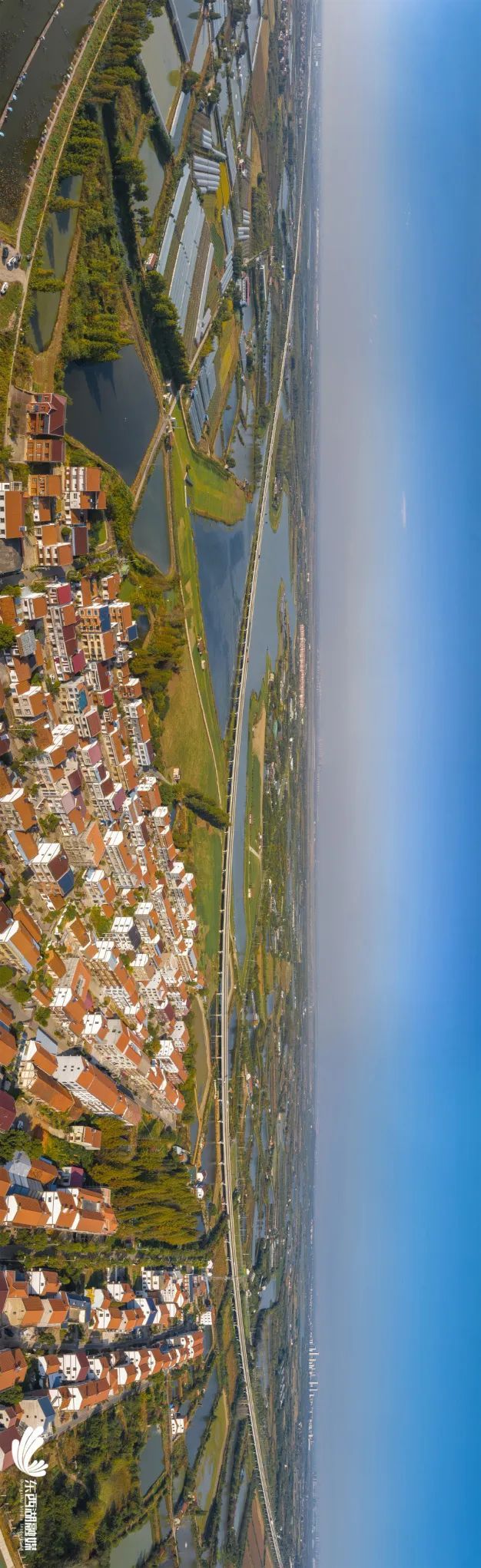 空中俯瞰东山,一幅现代田园画卷融入无边秋色中。