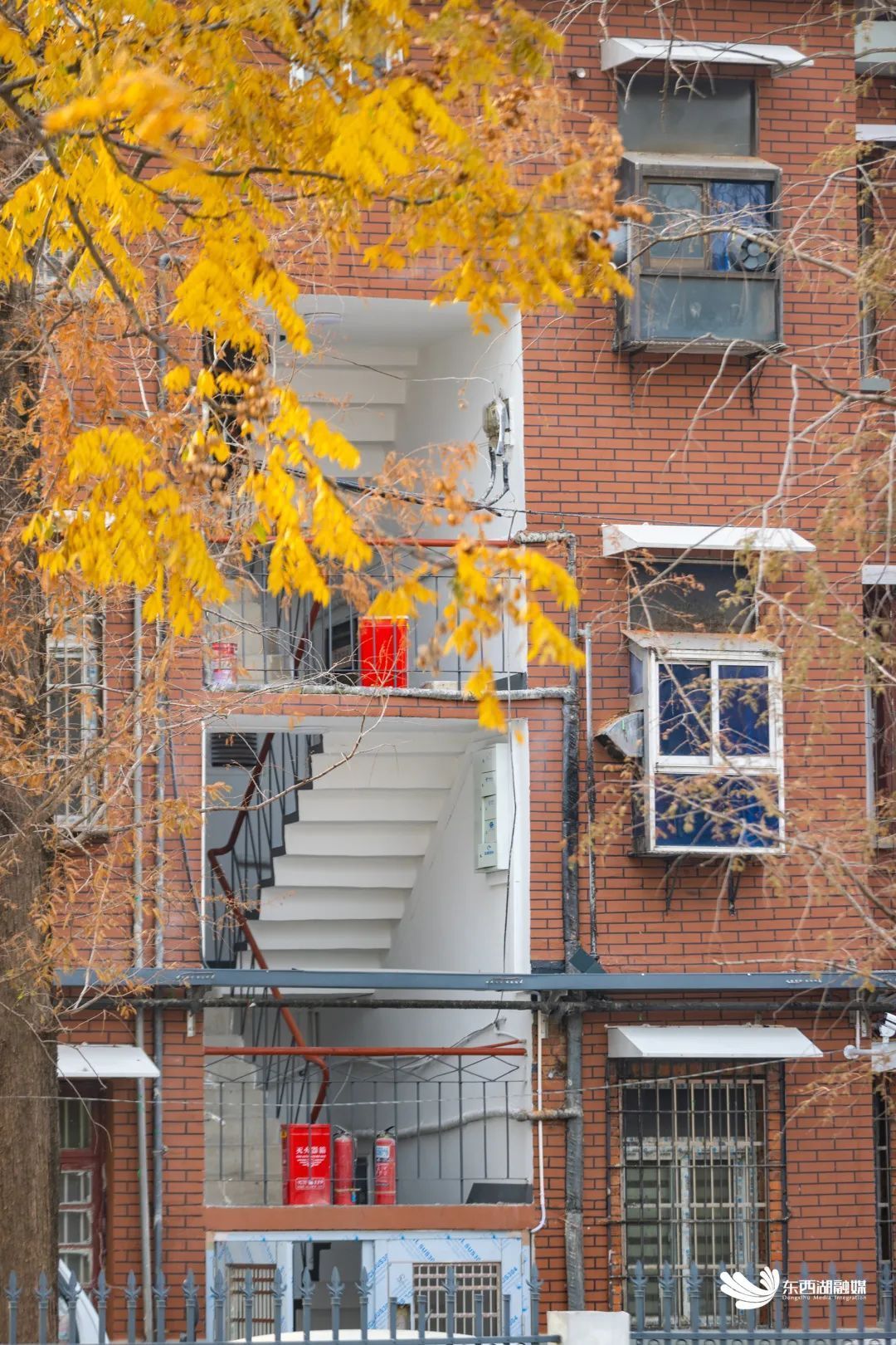 小区教委宿舍楼改造时添置了安全设施。