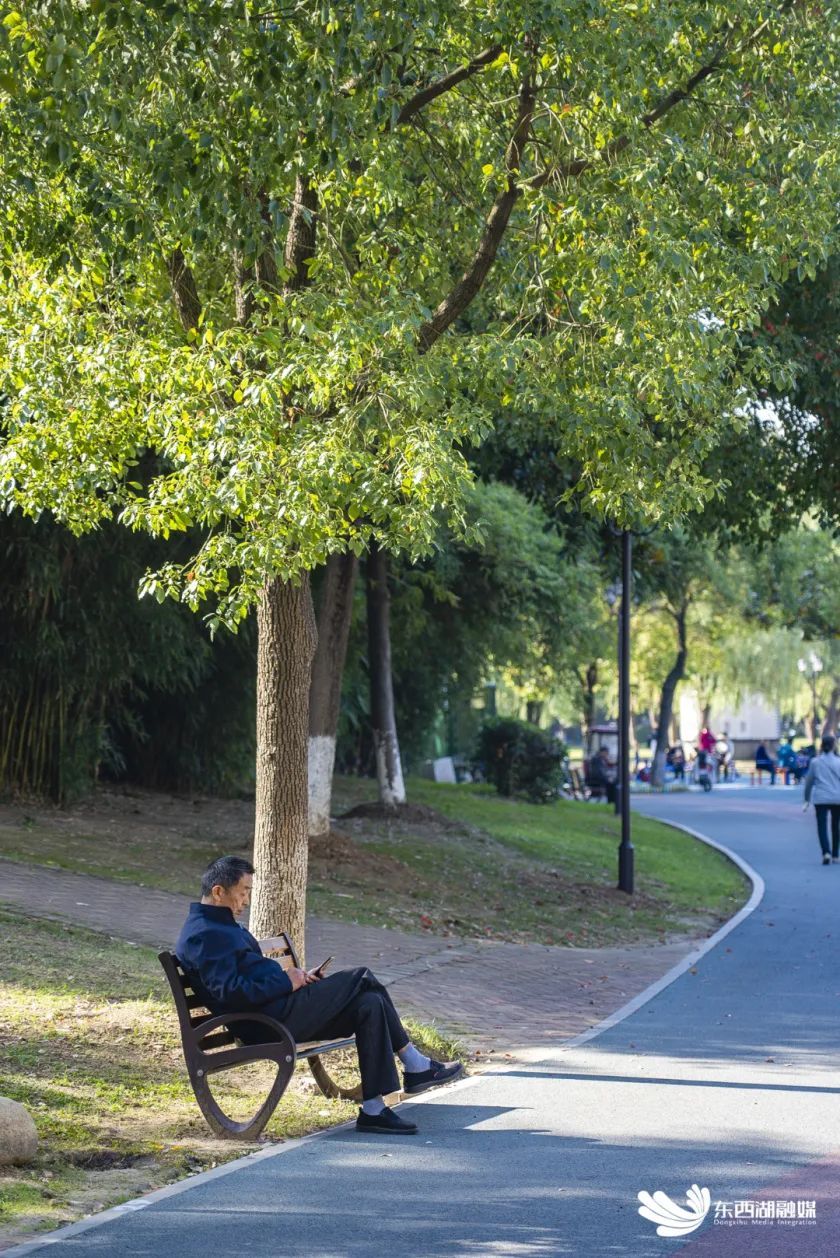 时至秋冬,树顶藏不住阳光。80后爸爸任辉明喜欢带5岁女儿沐浴着阳光在社区中央公园游园,“前期经社区征求我们意见,改造后的公园有了青春元素,增添了儿童游乐、健康绿道,更契合年轻人需求。”