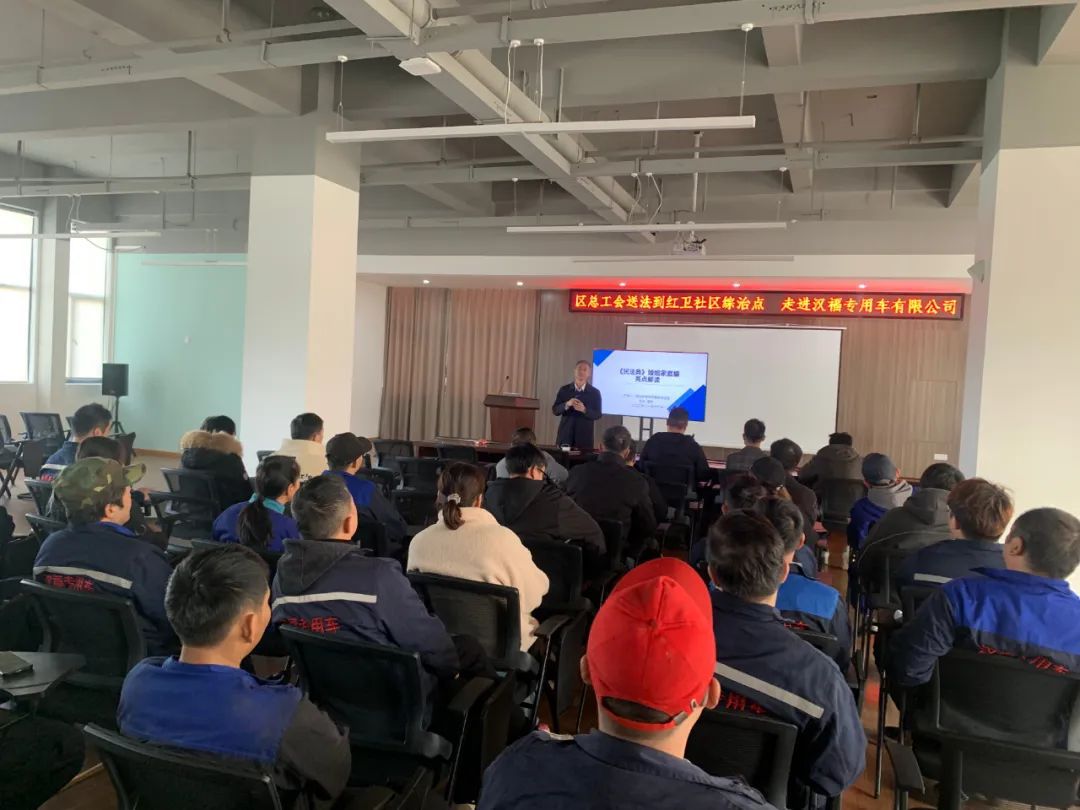 活动邀请区政府常年法律顾问陈亮律师,为武汉汉福专用车有限公司的近40名职工进行法律知识讲解。陈亮律师以其丰富的法律经验和精湛的专业知识,用通俗易懂的语言,以案释法,紧紧围绕夫妻债务共签制度、家务劳动经济补偿请求权、重大疾病不再是禁止结婚和婚姻无效的事由、提高对无过错方的保护力度等法律法规,重点解读了《中华人民共和国民法典》婚姻家庭篇。