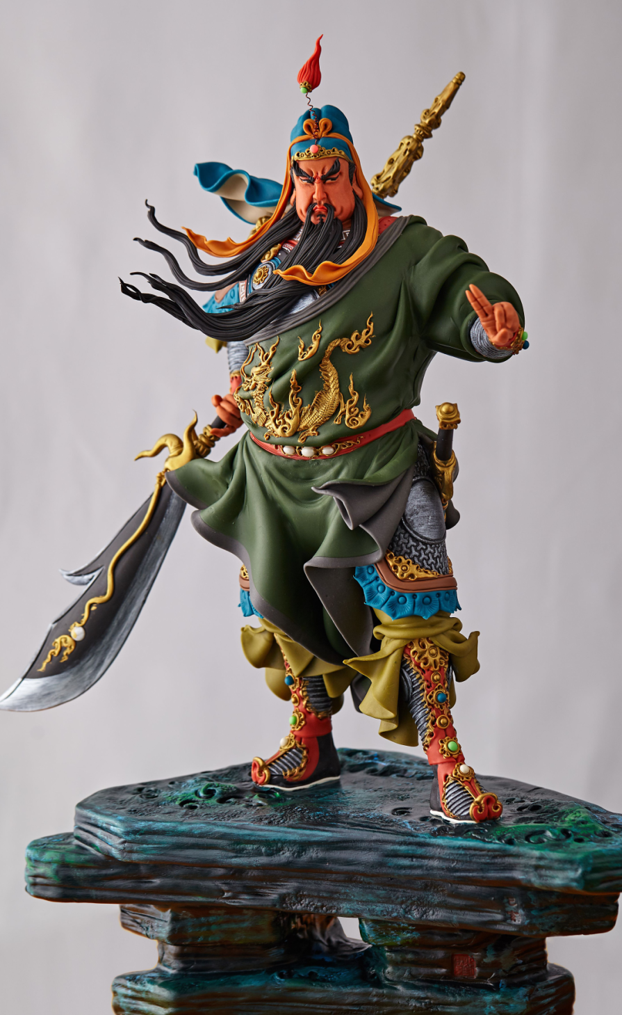 威风凛凛的关公,狂傲不羁的李白,八面威风的西楚霸王,英姿飒爽的花木兰......刘洁在面塑作品中,将面塑魅力与现代雕塑艺术巧妙结合起来。“关公这个人物占了我所有销售作品的三分之二。”刘洁介绍,关公的人物形象深刻在心里,他并没有特意去找底稿。他塑造的关公凝神聚气,观之有豪气冲天之威。