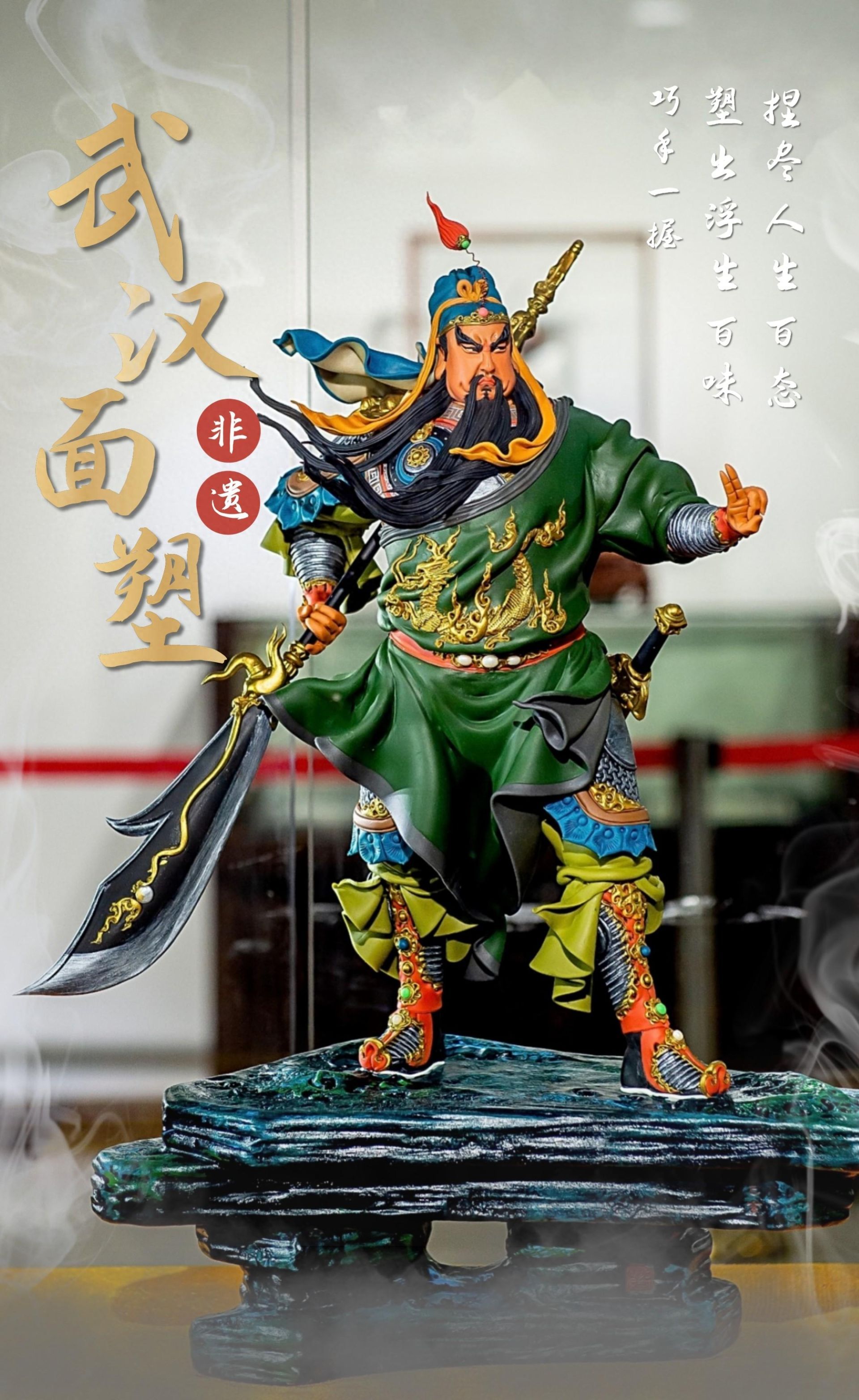 汉口里“长江非遗博物馆”收藏的面塑关公就出自刘洁之手,作品长1.2米,宽0.8米,高2.35米,重200余公斤,是目前长江流域最大的一尊面塑关公作品。