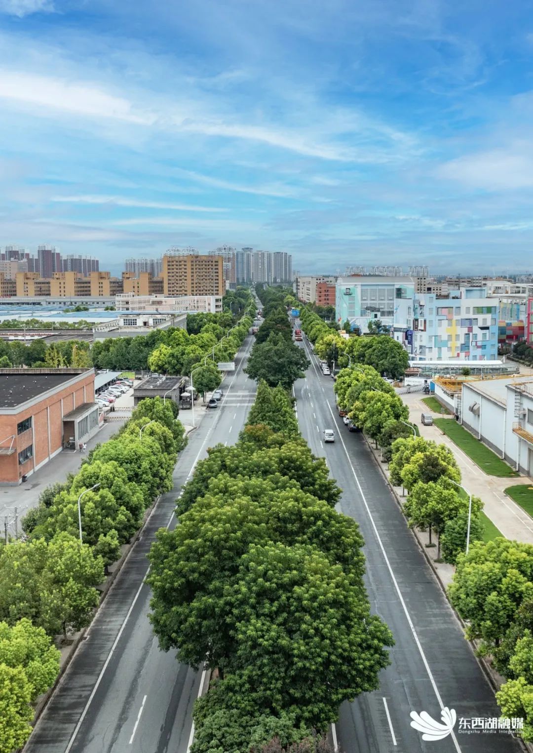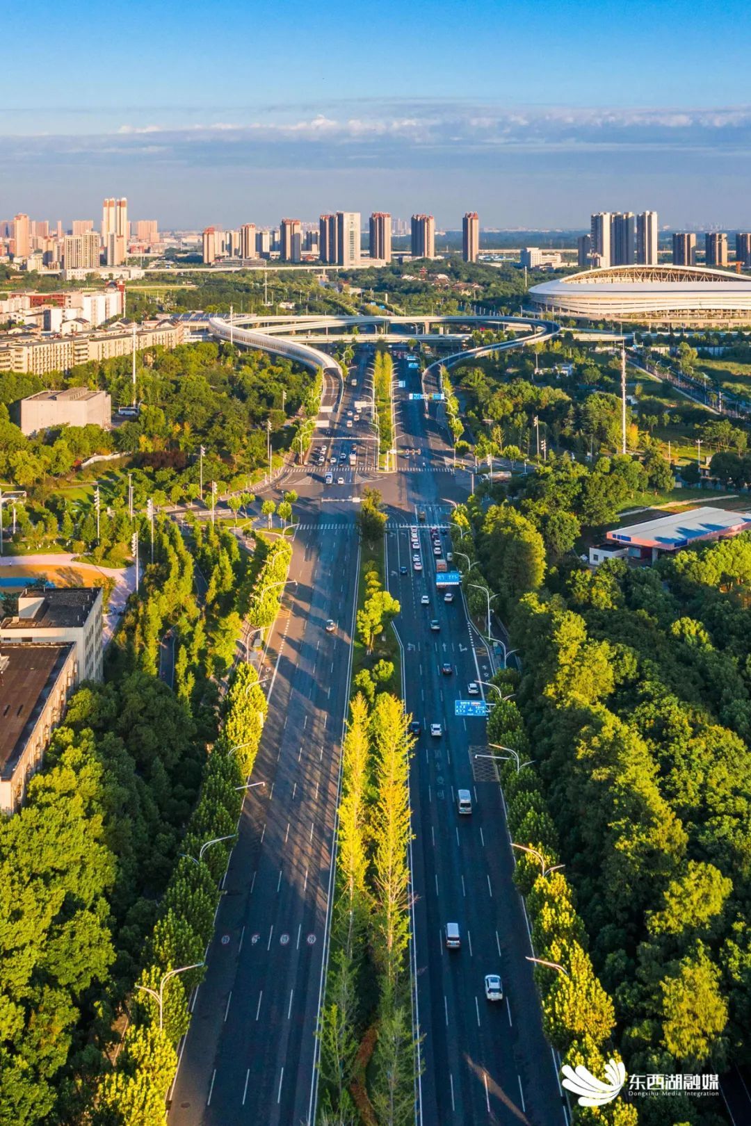 车在林中行,人在画中游。条条大道承载产业骨架的同时,也勾勒出一年四季街景更替、繁华盛景美不胜收的生态景观十字轴。