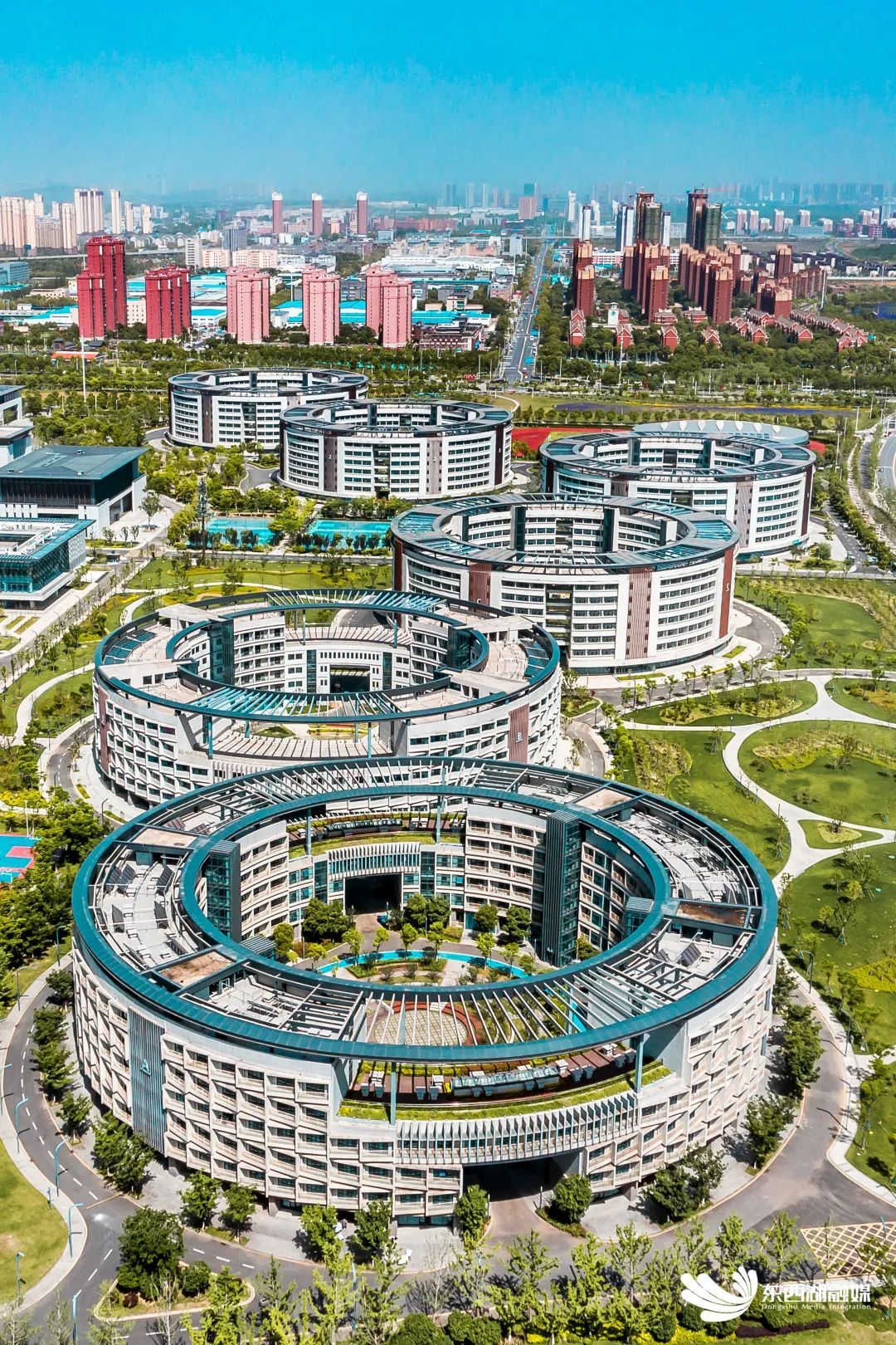 绿轴联通、水脉连网、蓝绿交织——国家网安基地核心载体,已经成为涵盖生产、工作、生活、休闲、娱乐为一体的多元载体和城市综合体,带动周边经济、民生、服务跨越式提档升级。