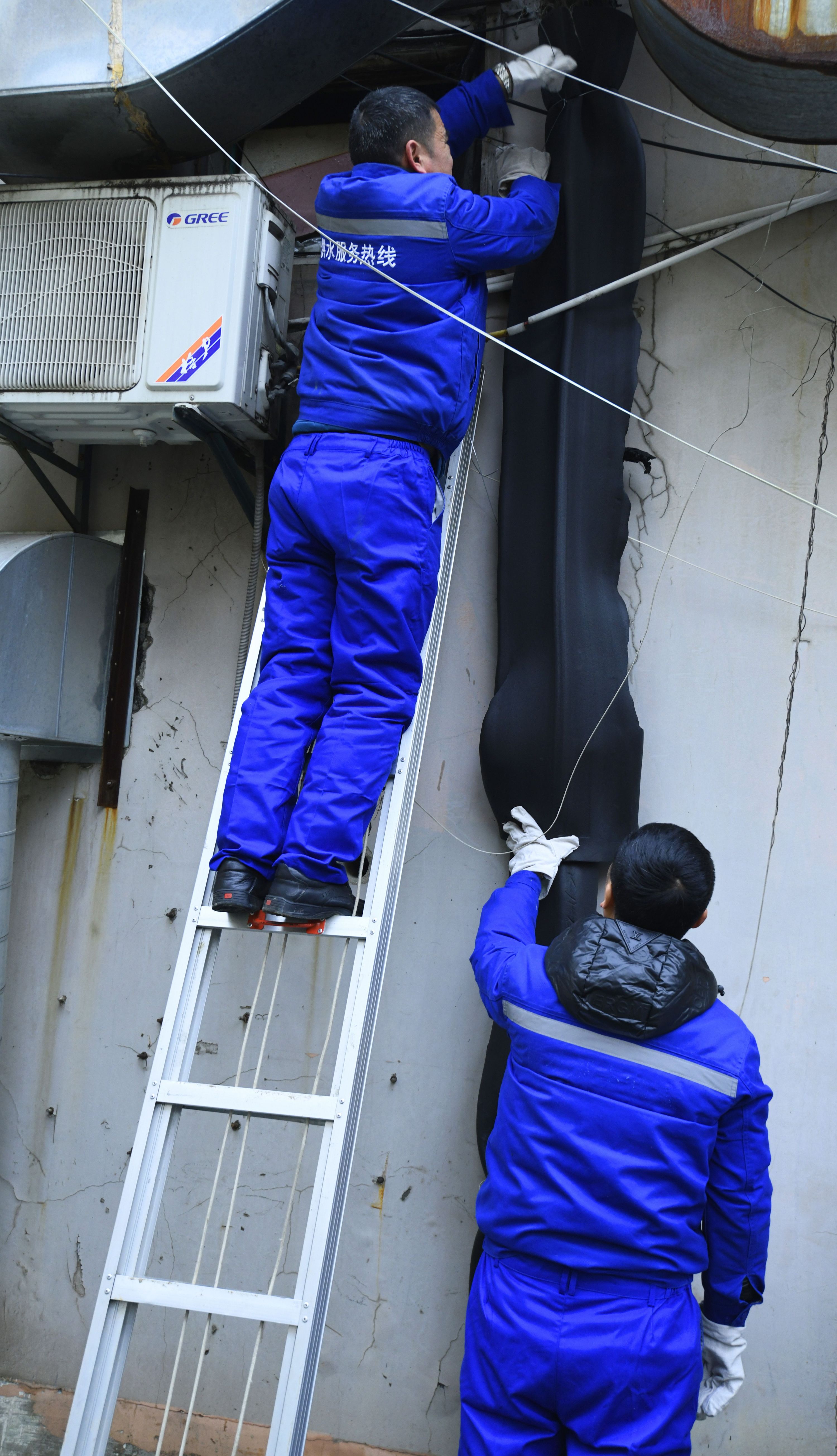 12月11日,气温骤降,东西湖区自来水公司提前对消防栓、户外裸露管道等易冻设施“体检”,为供水设施穿上“小棉袄”。