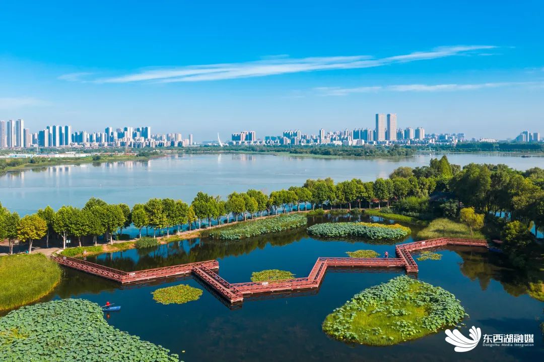 目前,东西湖有各类公园、游园70个,拥有金银湖、杜公湖两个国家级湿地公园和全市规模最大的公园——园博园;26个湖泊星罗棋布,金银湖42公里环湖绿道全线贯通。