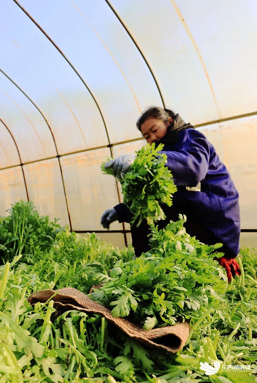 农户们正忙着抢收茼蒿