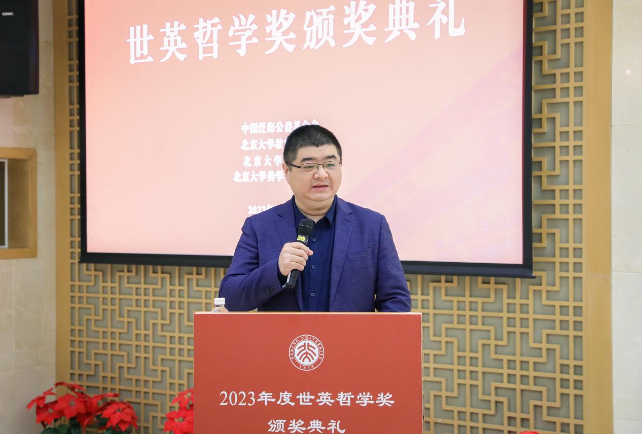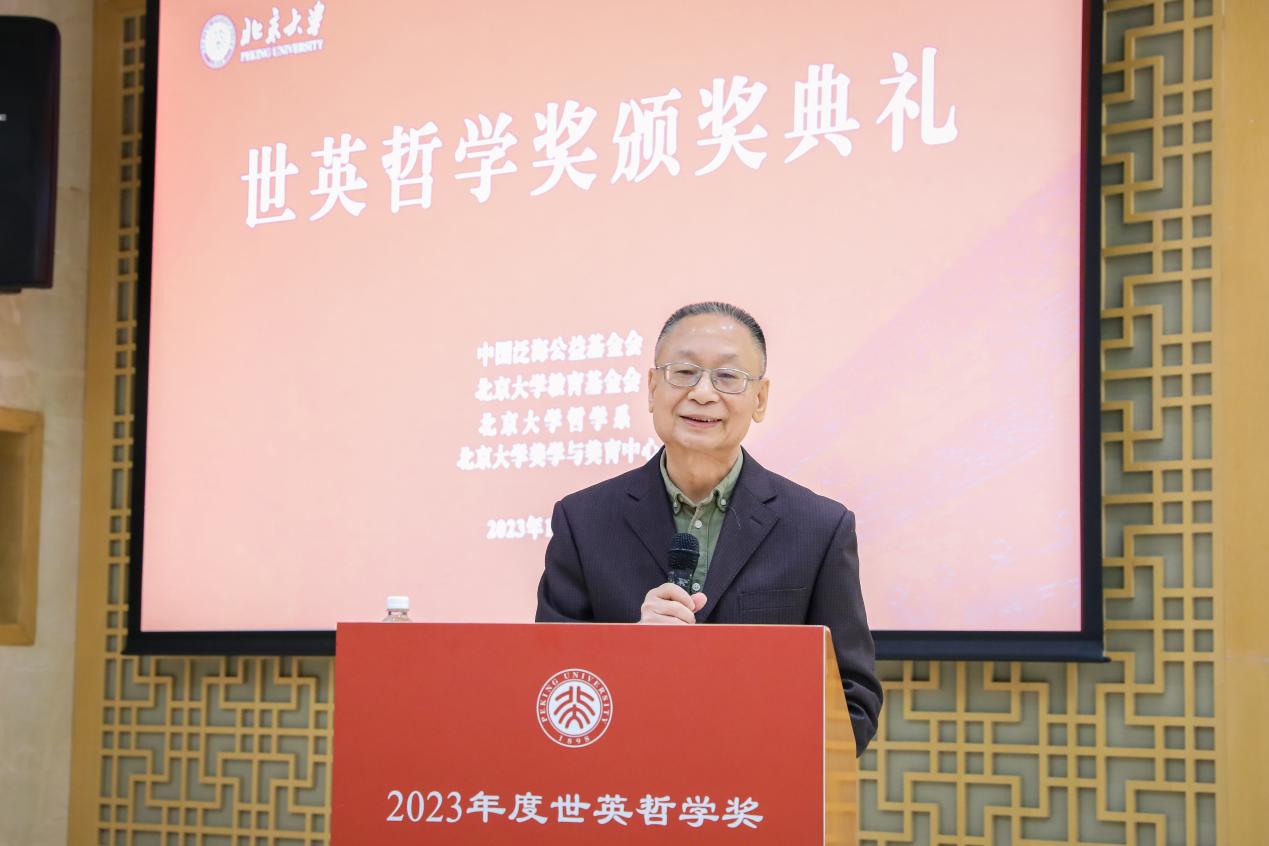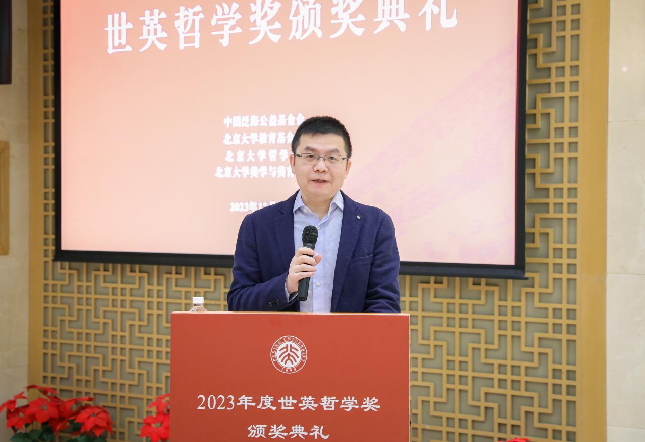 “世英哲学奖”的评审和相关工作一直得到北京大学校领导的关心和指导,也得到北京大学教育基金会的大力支持。在工作委员会宣布获奖名单之后,王博发表致辞。王博回顾了“世英哲学奖” 的设立过程和学术初衷,着重强调了这一奖项的独特学术价值观,并对所有获奖学者表示热烈祝贺。他指出,“世英哲学奖”应该成为推动哲学学术发展、学科体系和原创思想发展的重要力量,并以此提升哲学思想的社会影响力。